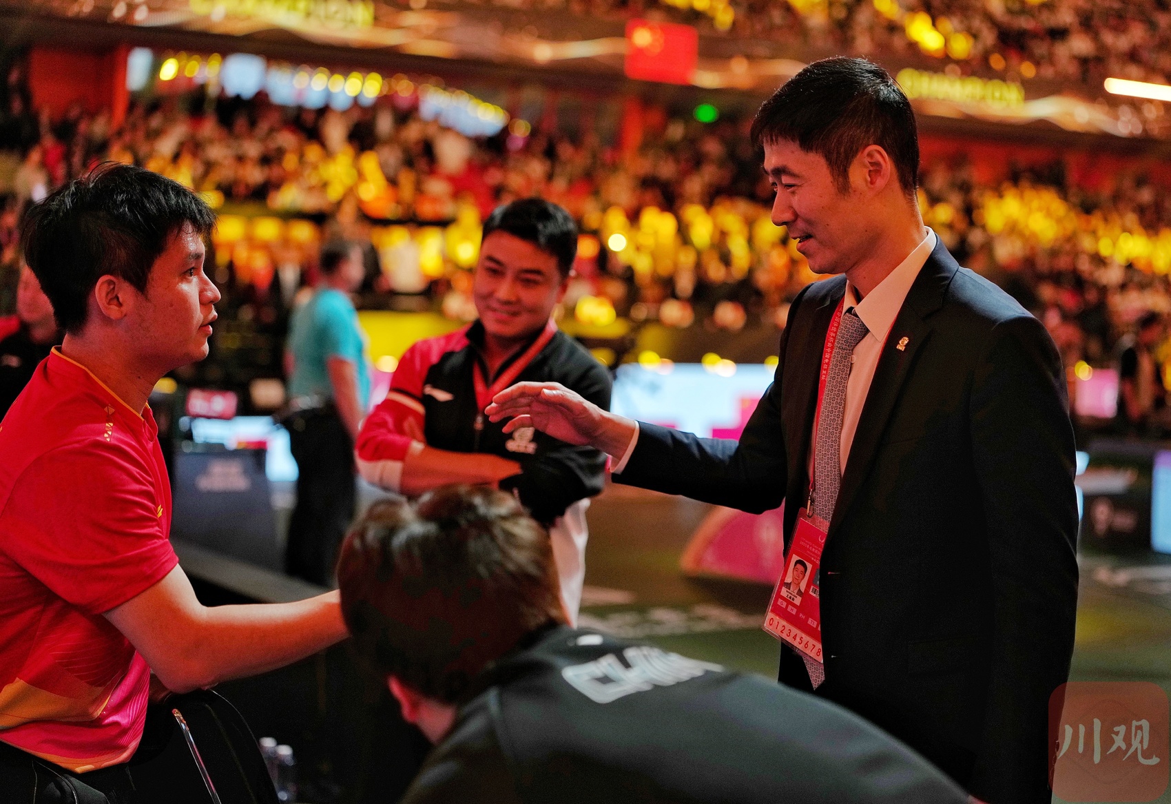 赛后,乒协主席王励勤向林诗栋表示祝贺。