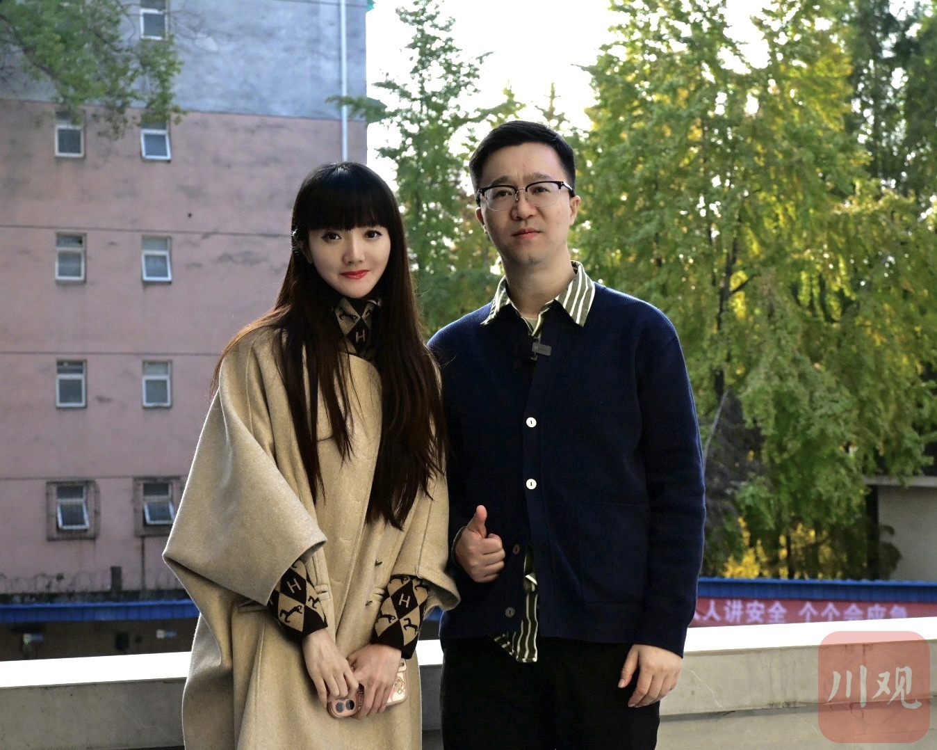 四川在线记者与江逸合照。李志强 摄