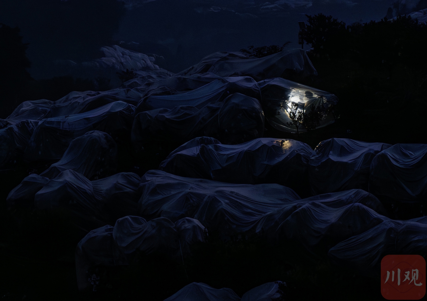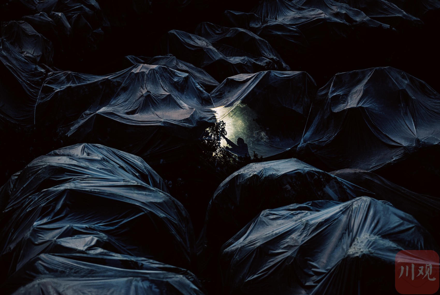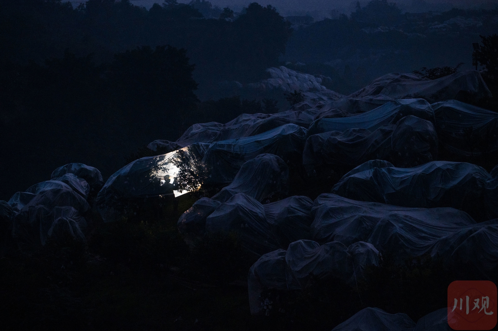 为抢在天气变化前完成管护,不少果农开启“挑灯夜战”模式,加紧覆膜作业。目前,全村3000多亩柑橘已基本完成覆膜。