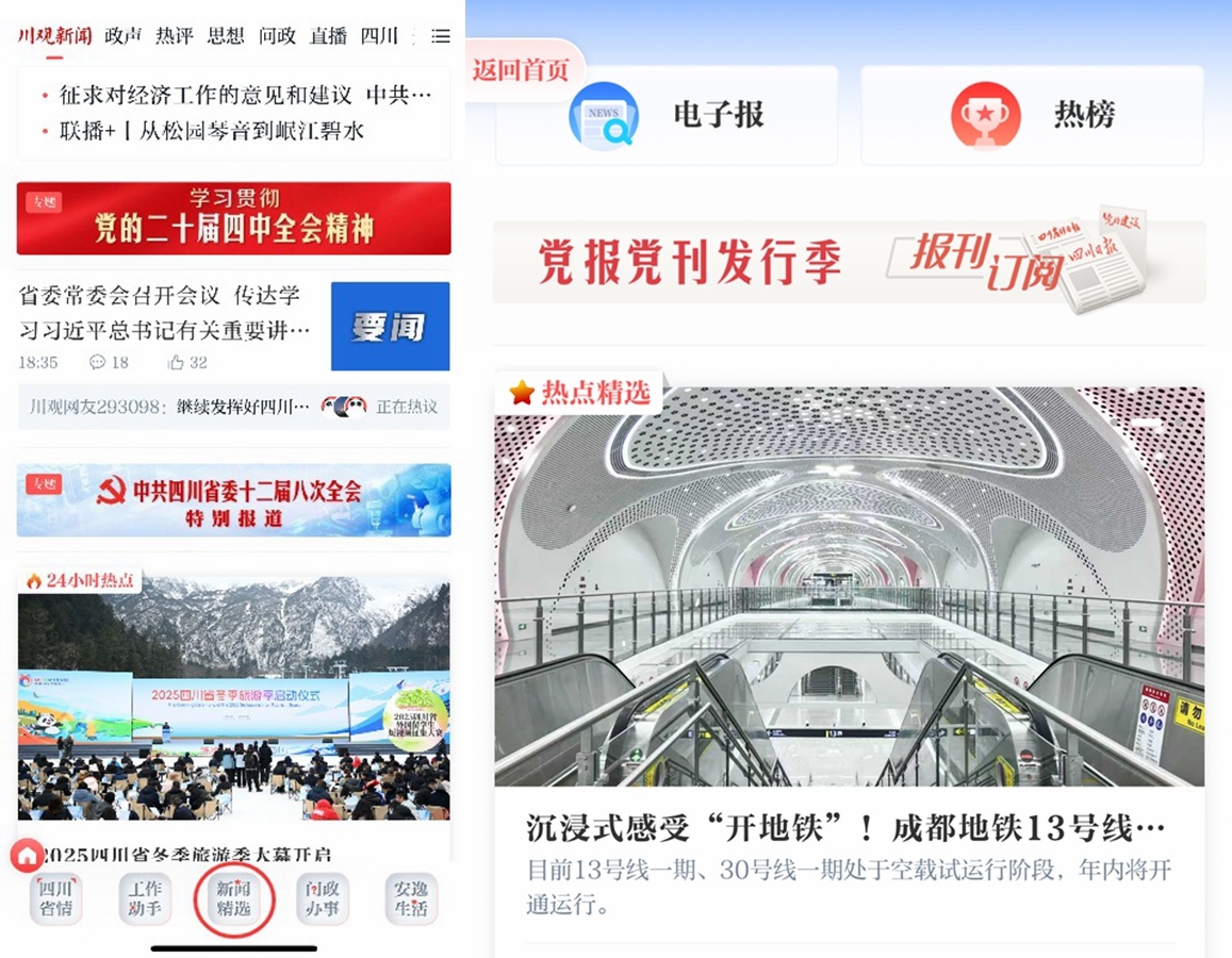 方式一:下载川观新闻客户端→点击底部工作栏“新闻精选”→选择“党报党刊发行季-报刊订阅”