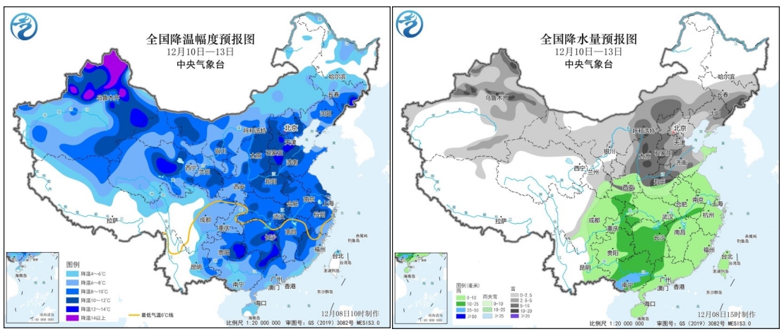 中央气象台预计,10日起受寒潮影响,我国将迎来一次降温、大风和雨雪天气过程。10日至13日,我国大部地区自西向东气温将普遍下降6 ℃~ 10℃。