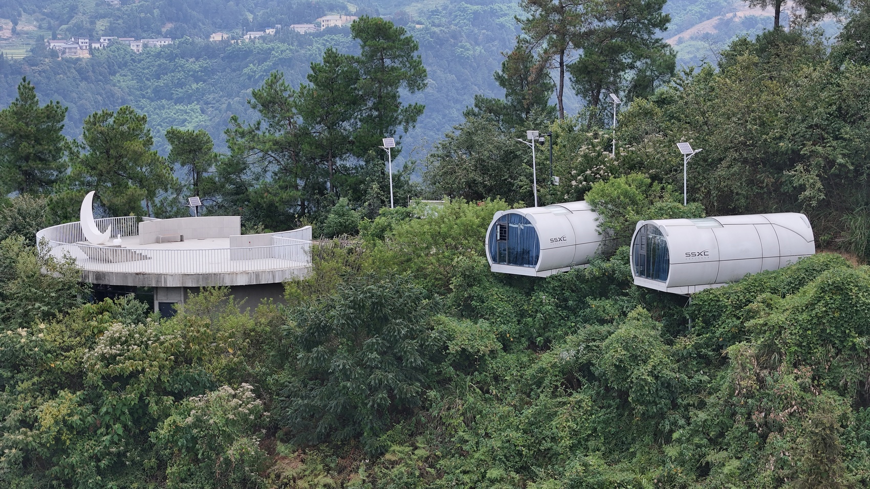 棕阁山度假区太空舱及观月台。(图源邻水县融媒体中心)