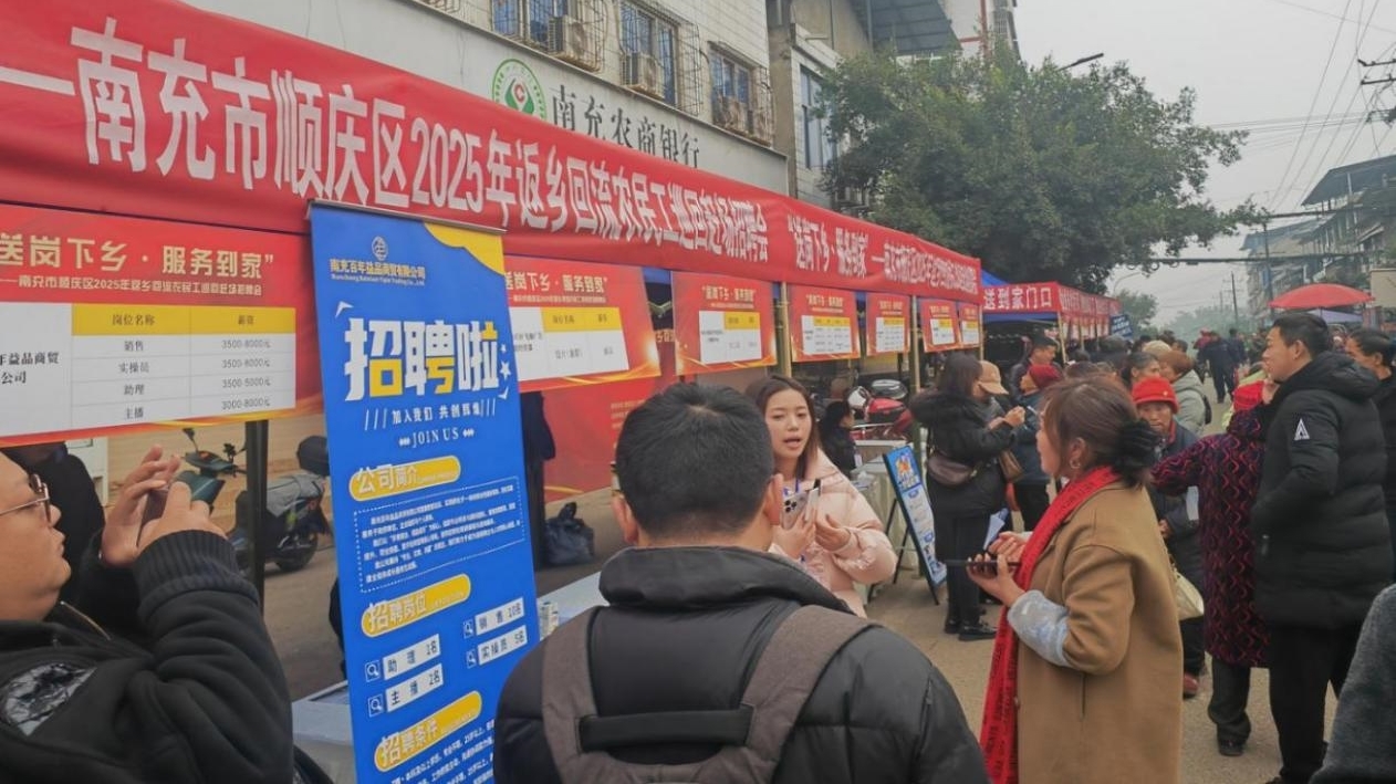 近日,南充市顺庆区为返乡农民工举行的招聘会(图片来源:南充市人社局)