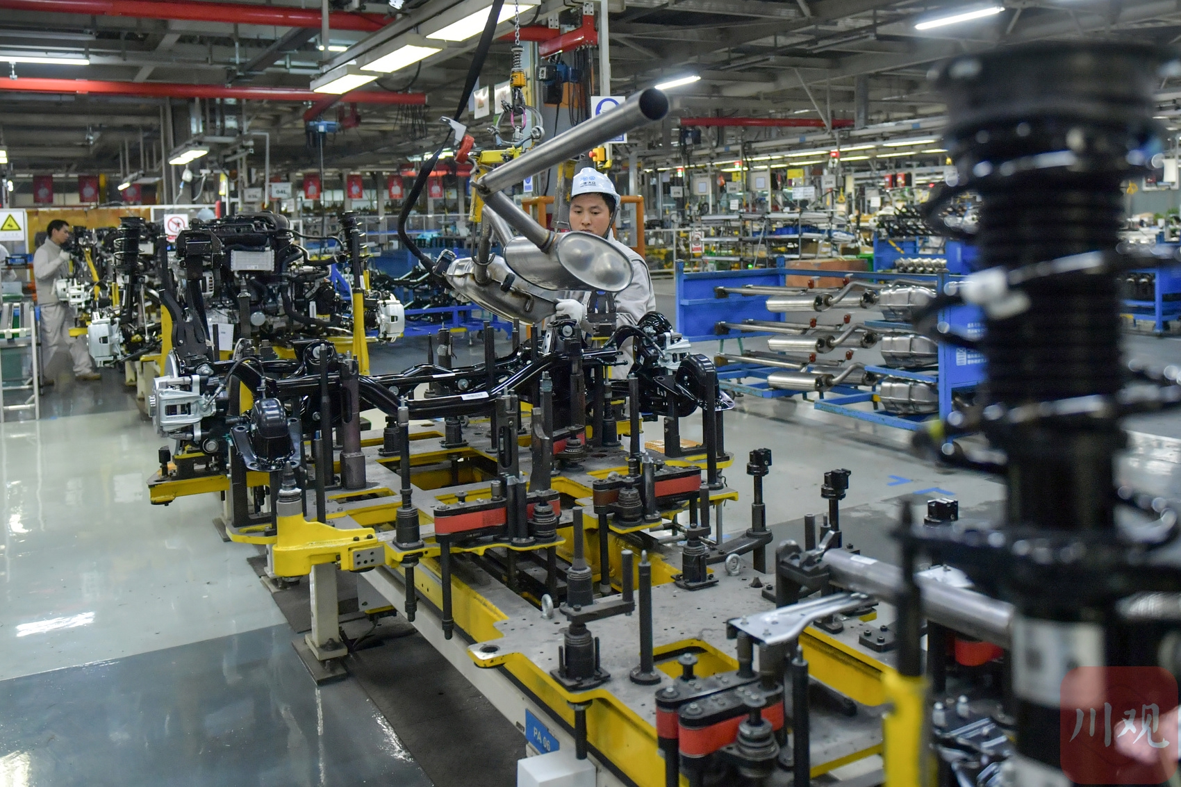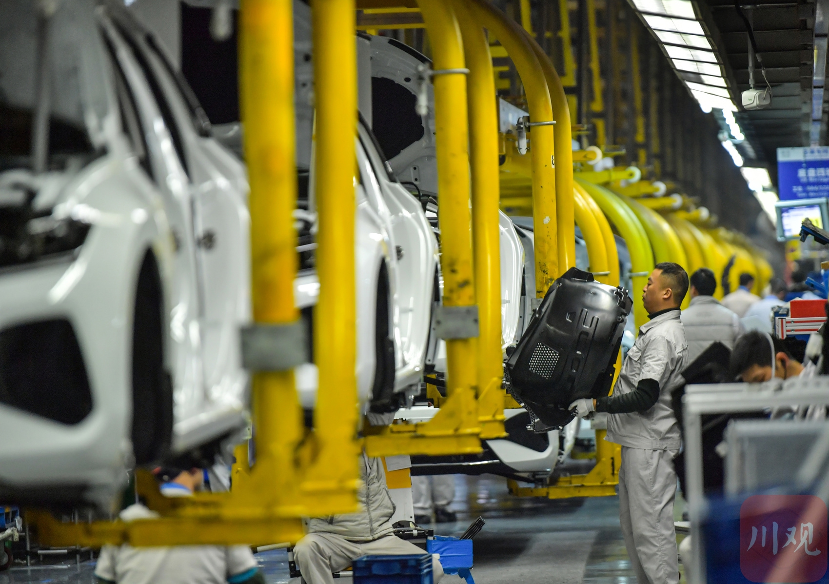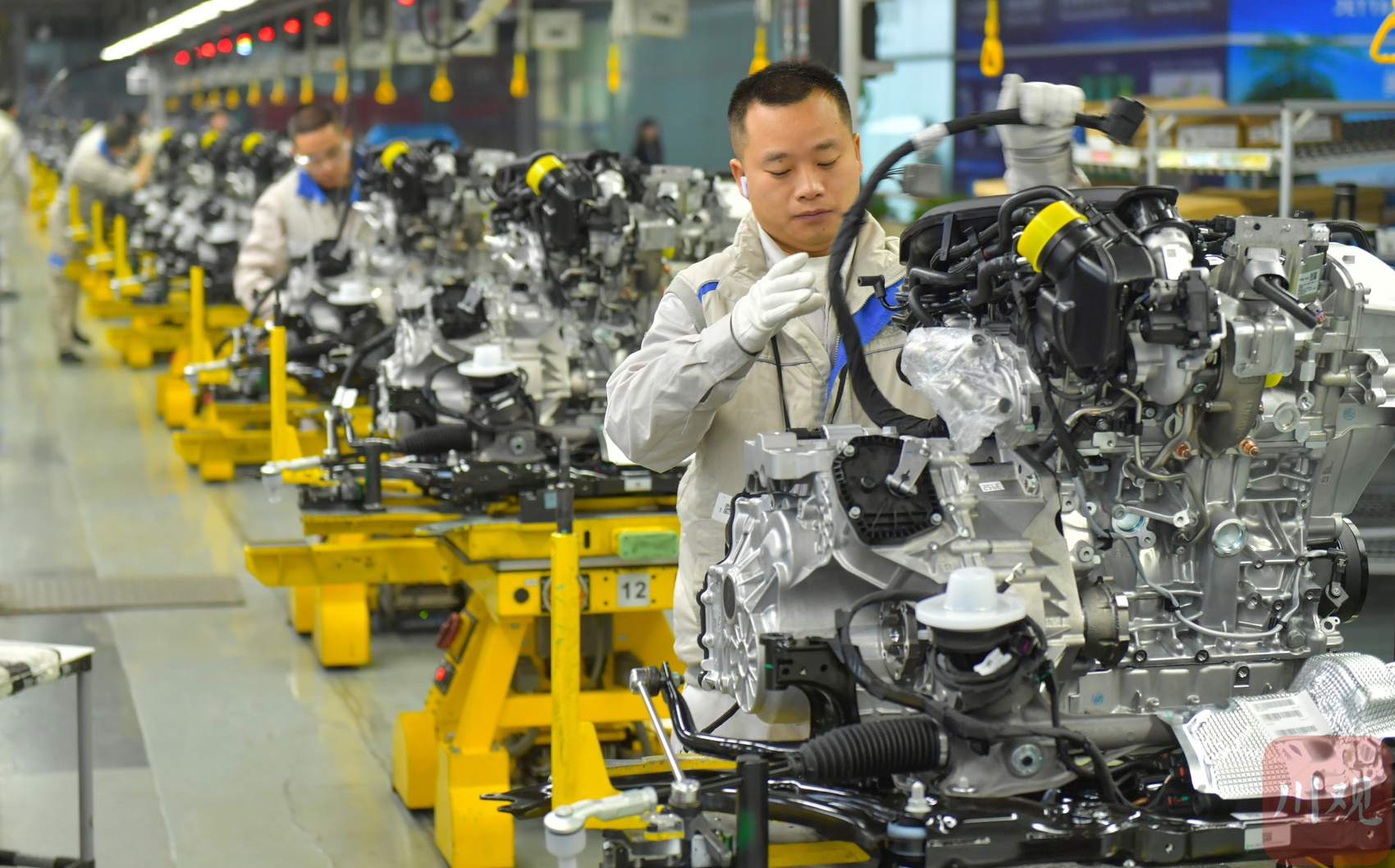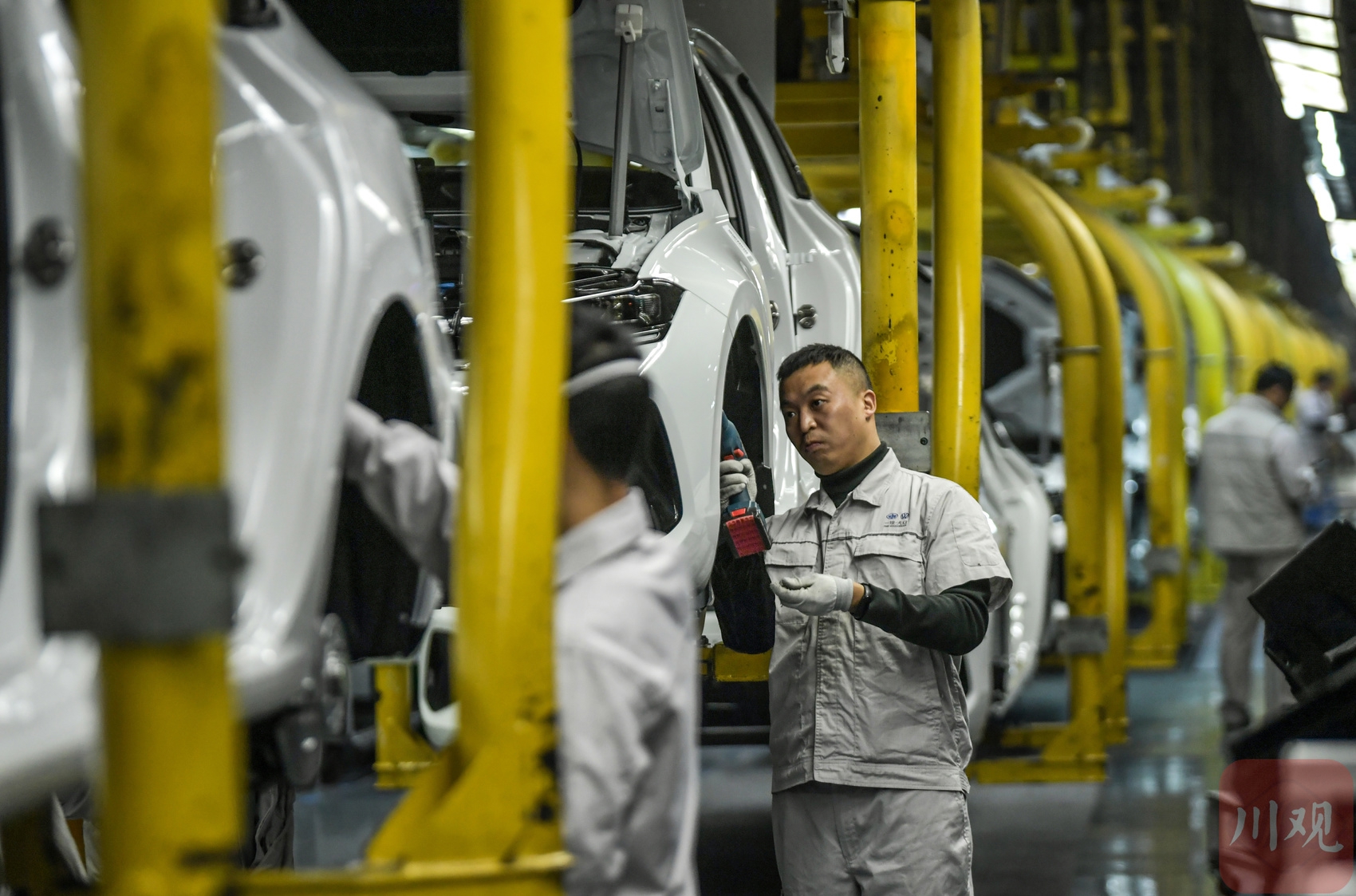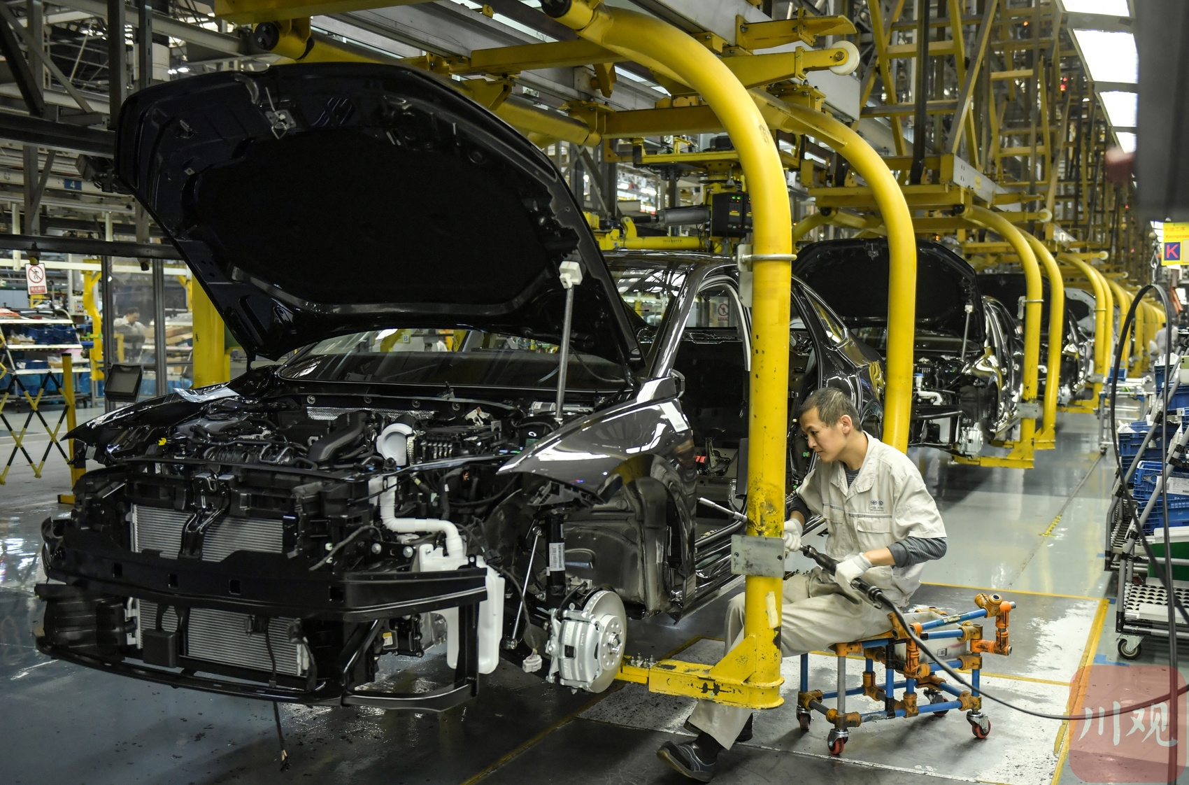 2025年12月9日,在位于成都经开区的一汽-大众成都分公司生产车间,工作人员在岗位上忙碌组装车辆。