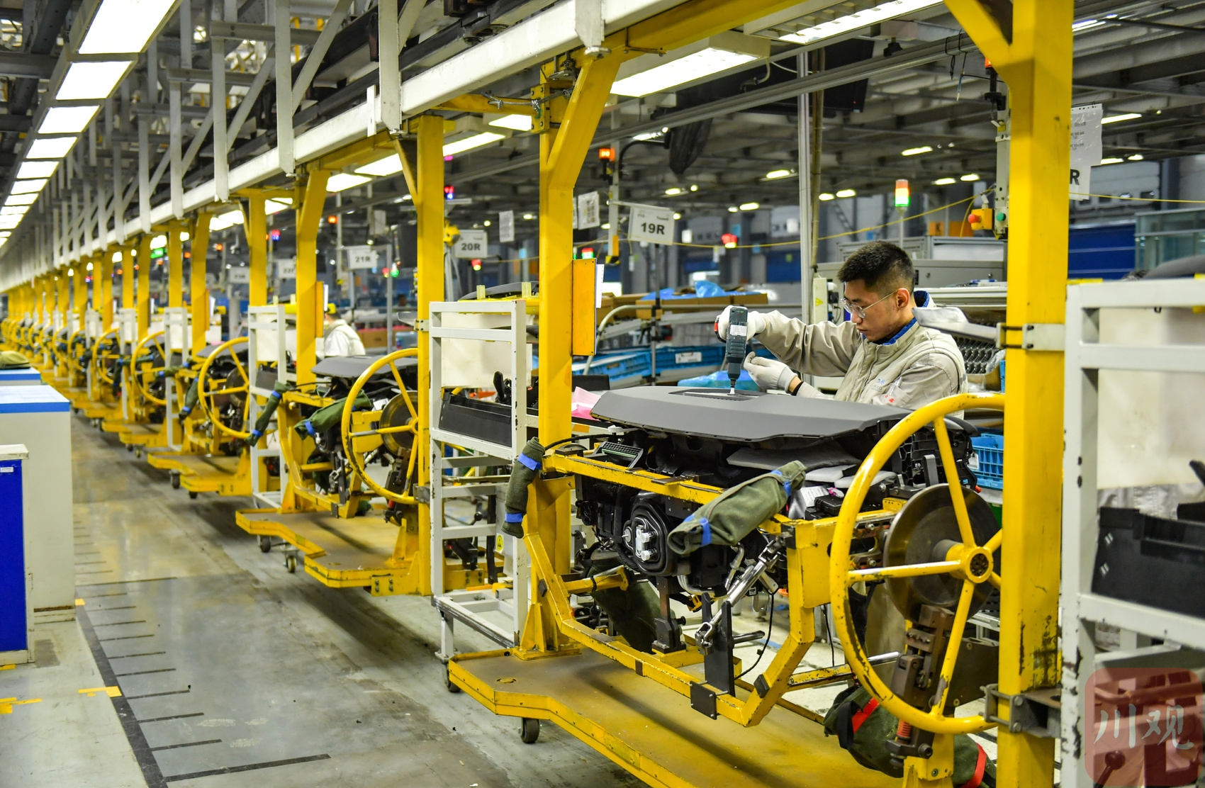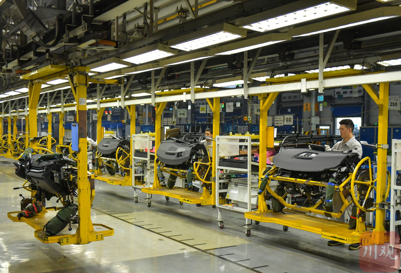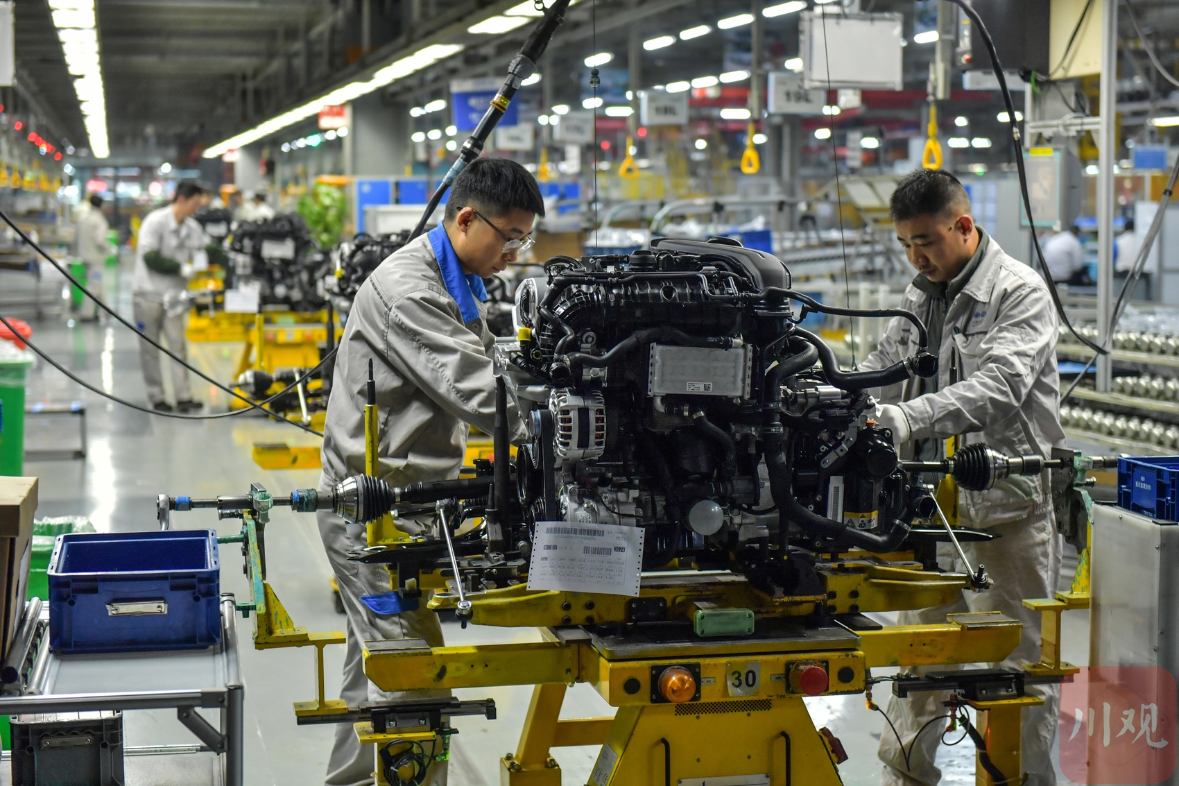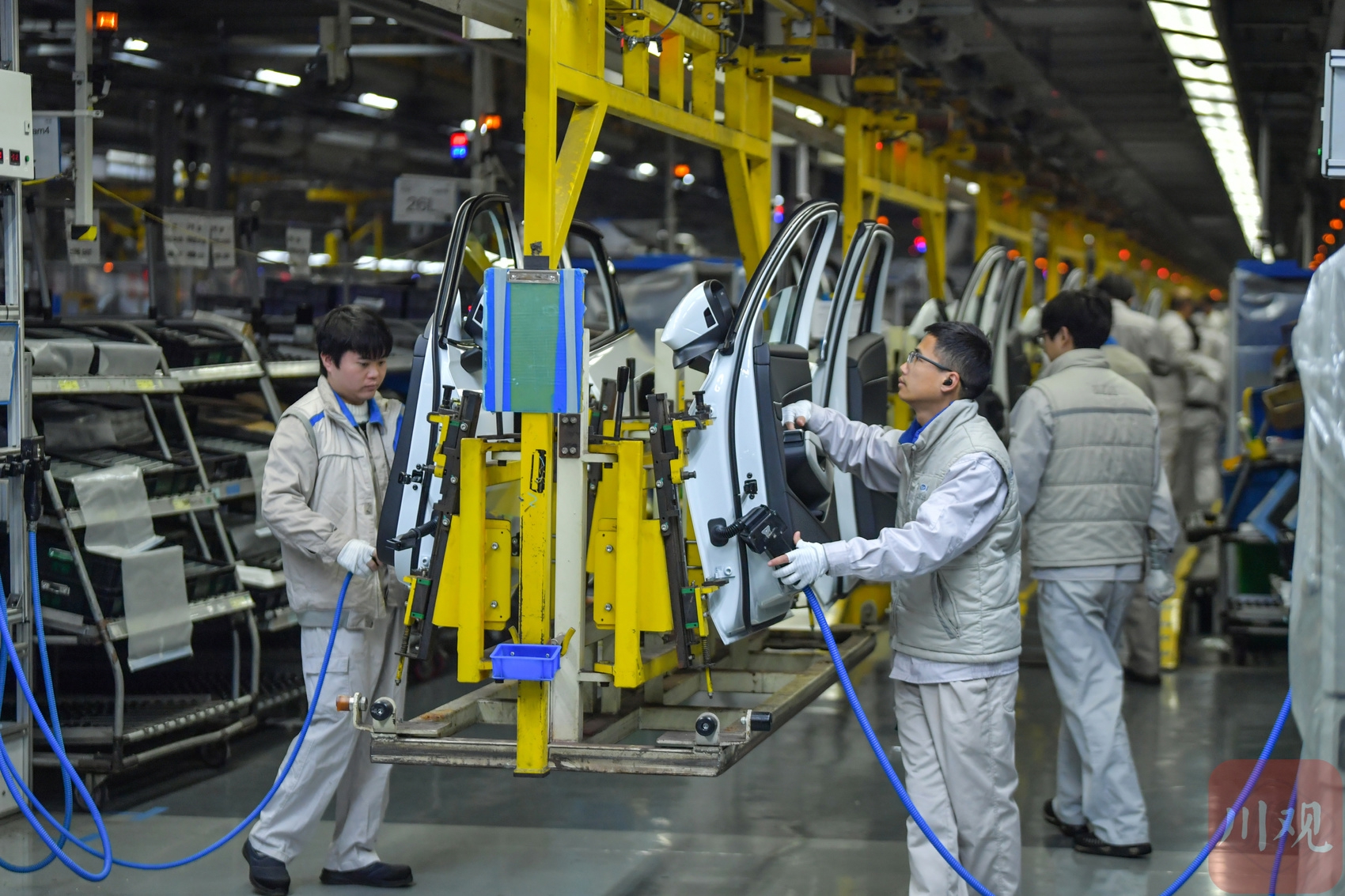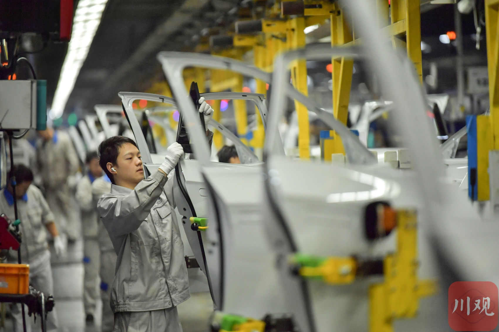 2025年12月9日,在位于成都经开区的一汽-大众成都分公司生产车间,工作人员在岗位上忙碌组装车辆。