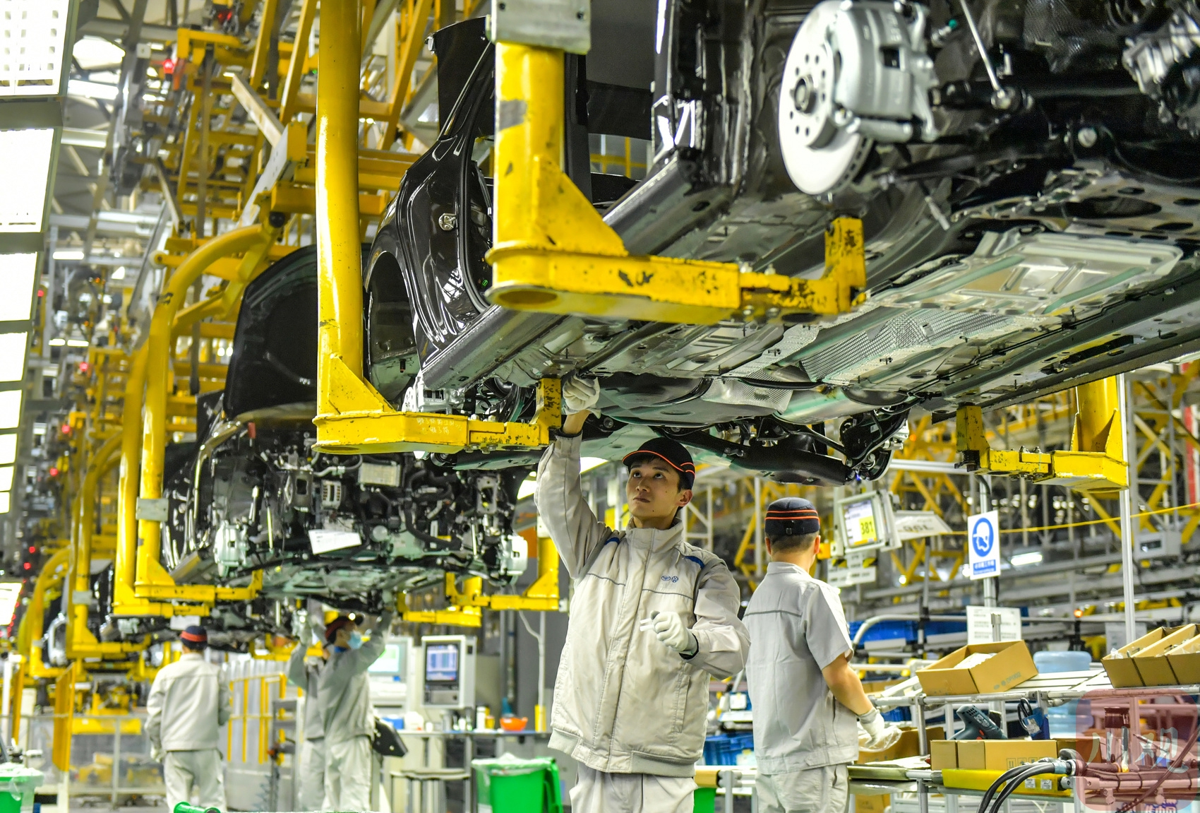 2025年12月9日,在位于成都经开区的一汽-大众成都分公司生产车间,工作人员在岗位上忙碌组装车辆赶订单。