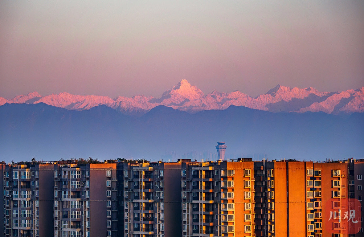 川西雪山群清晰地展现在成都市民眼前。C视觉摄影师 刘耀飞