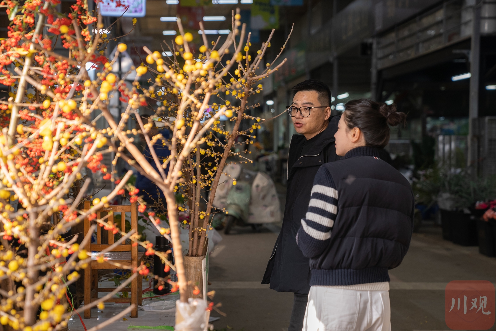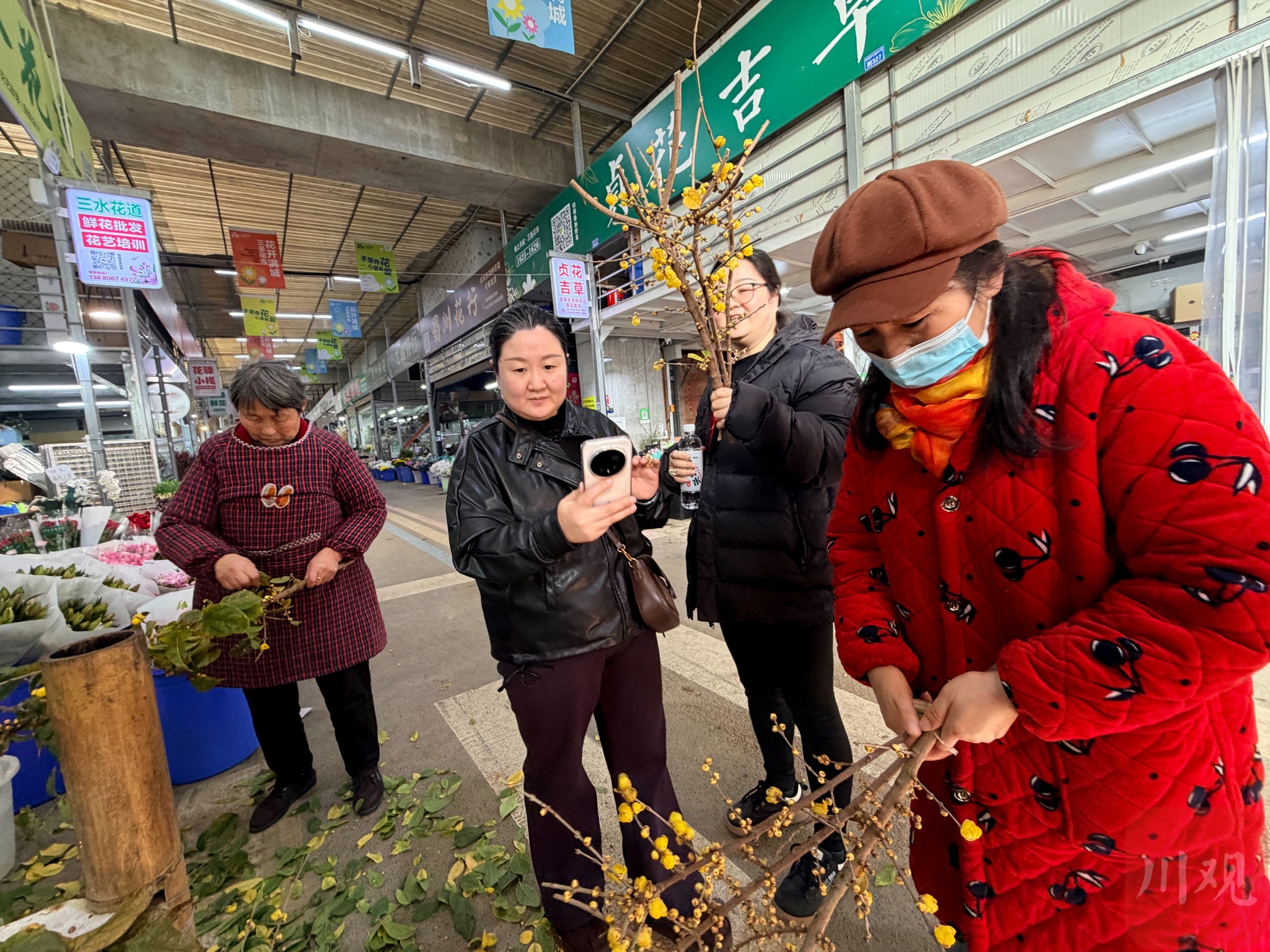近日,成都最早一批蜡梅悄然上市,为冬日的街头增添了一抹亮色与芬芳。12月10日,在锦江区三圣花市,部分花店正在销售蜡梅,清雅的香气吸引不少市民驻足询问。