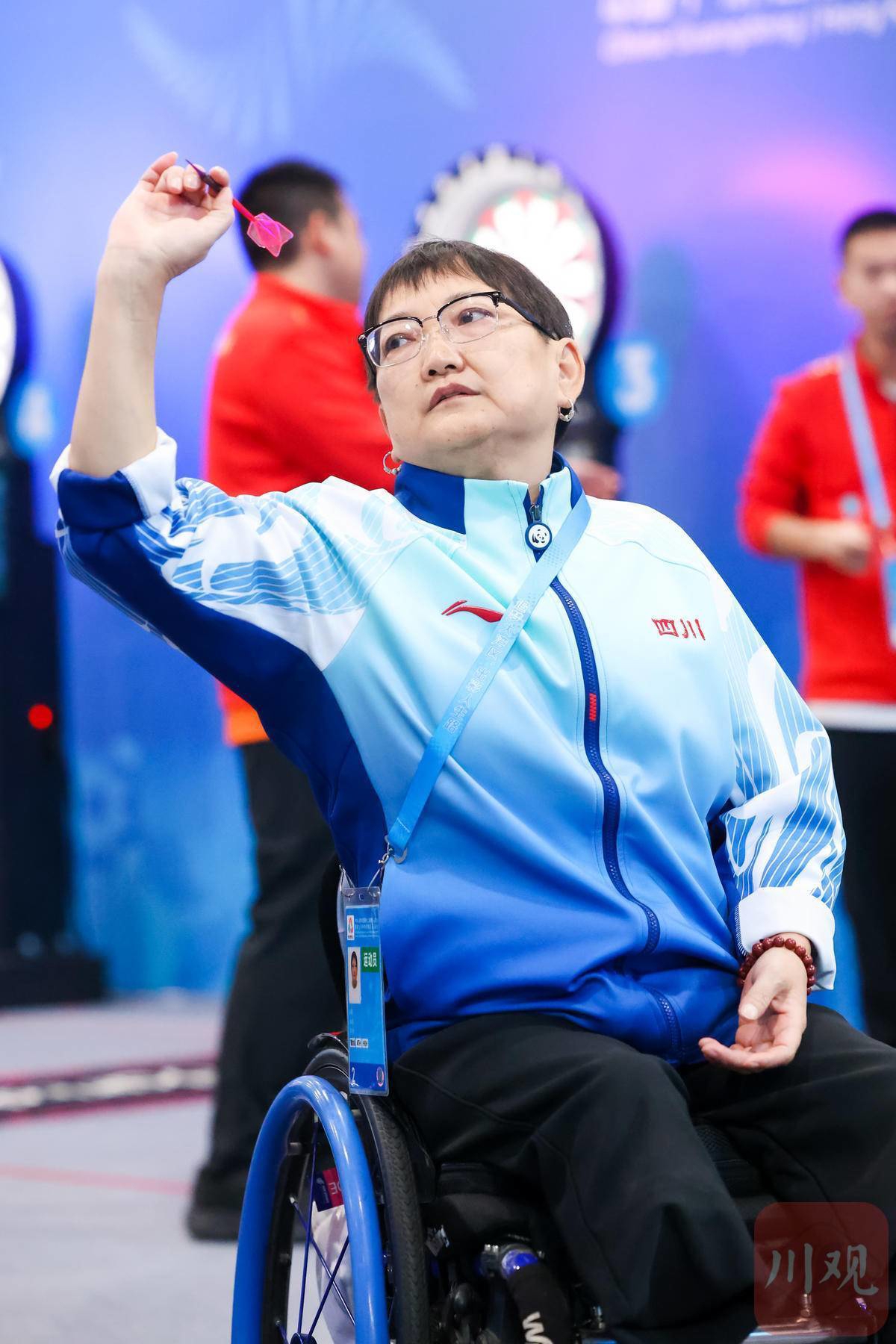 比赛中的四川残疾人飞镖队队员。