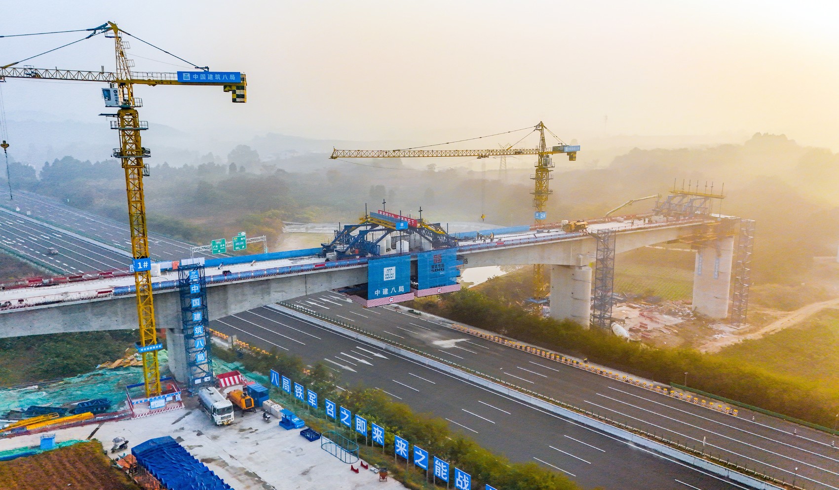 牌坊湾特大桥连续梁合龙。