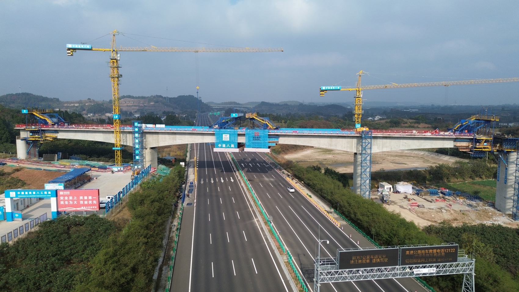 12月10日,绵遂资内铁路牌坊湾特大桥跨汉蓉高速公路连续梁合龙,这是项目全线第一个合龙的跨高速公路连续梁,为绵遂资内铁路绵阳至遂宁段2028年建成通车奠定基础。