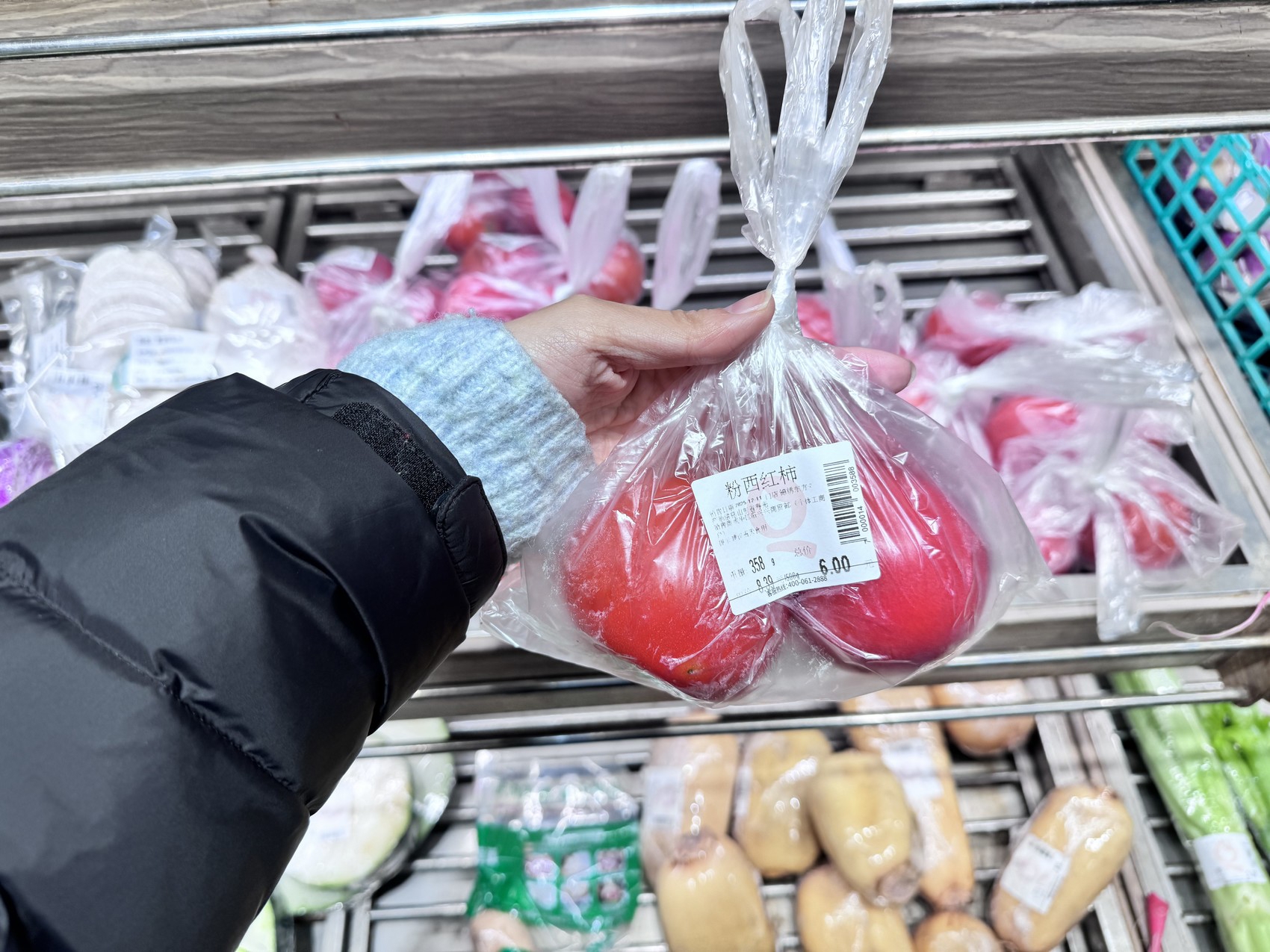 市民张先生原本打算买西红柿做汤,看到标价后转而拿起了黄瓜:“西红柿快赶上肉价了,先买点便宜的蔬菜,等价格降了再吃番茄炒蛋。”