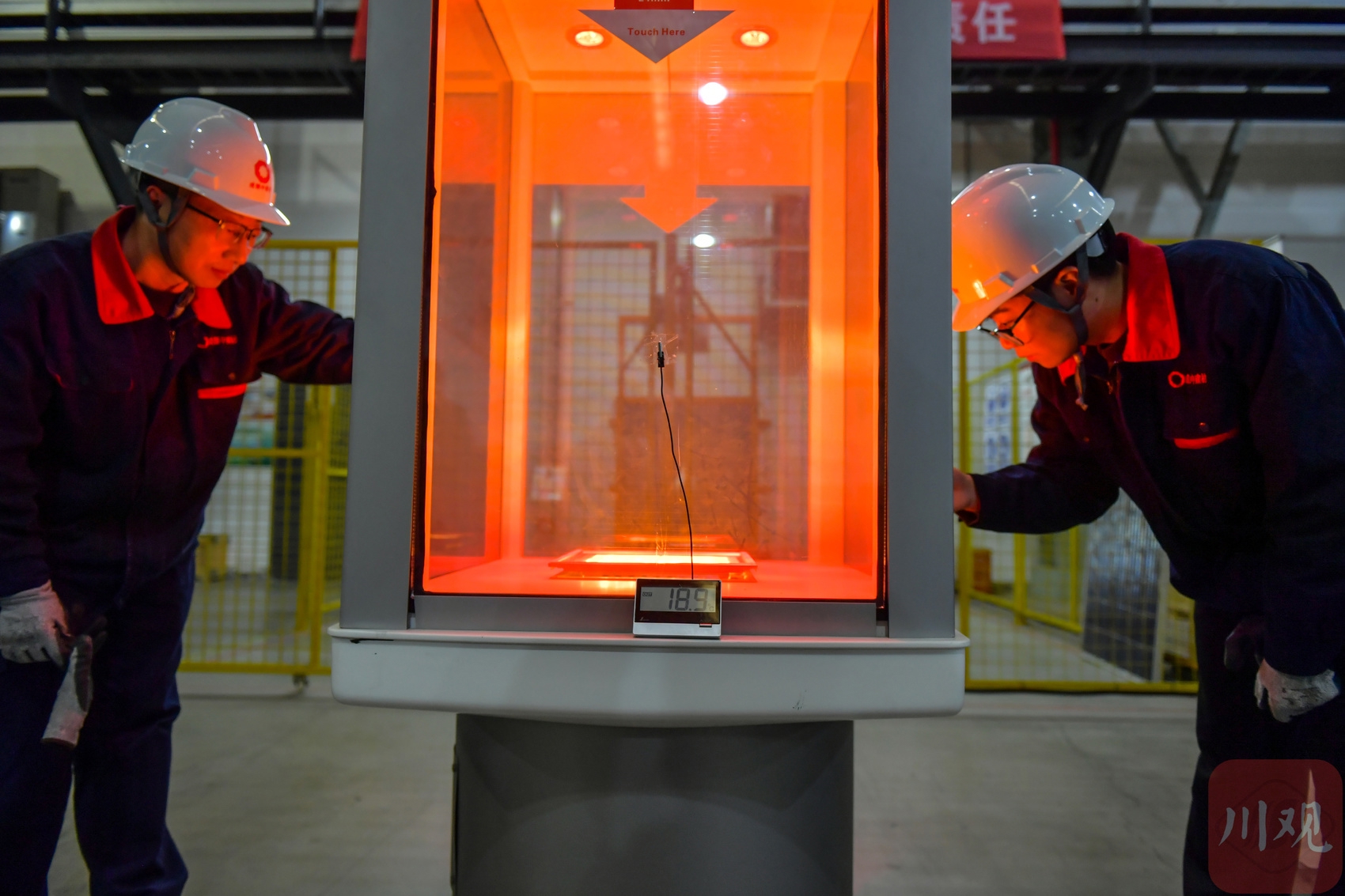 2025年12月11日,位于成都市双流经济开发区的成都中建材光电材料有限公司生产车间,工作人员对碲化镉发电玻璃进行测温检测。