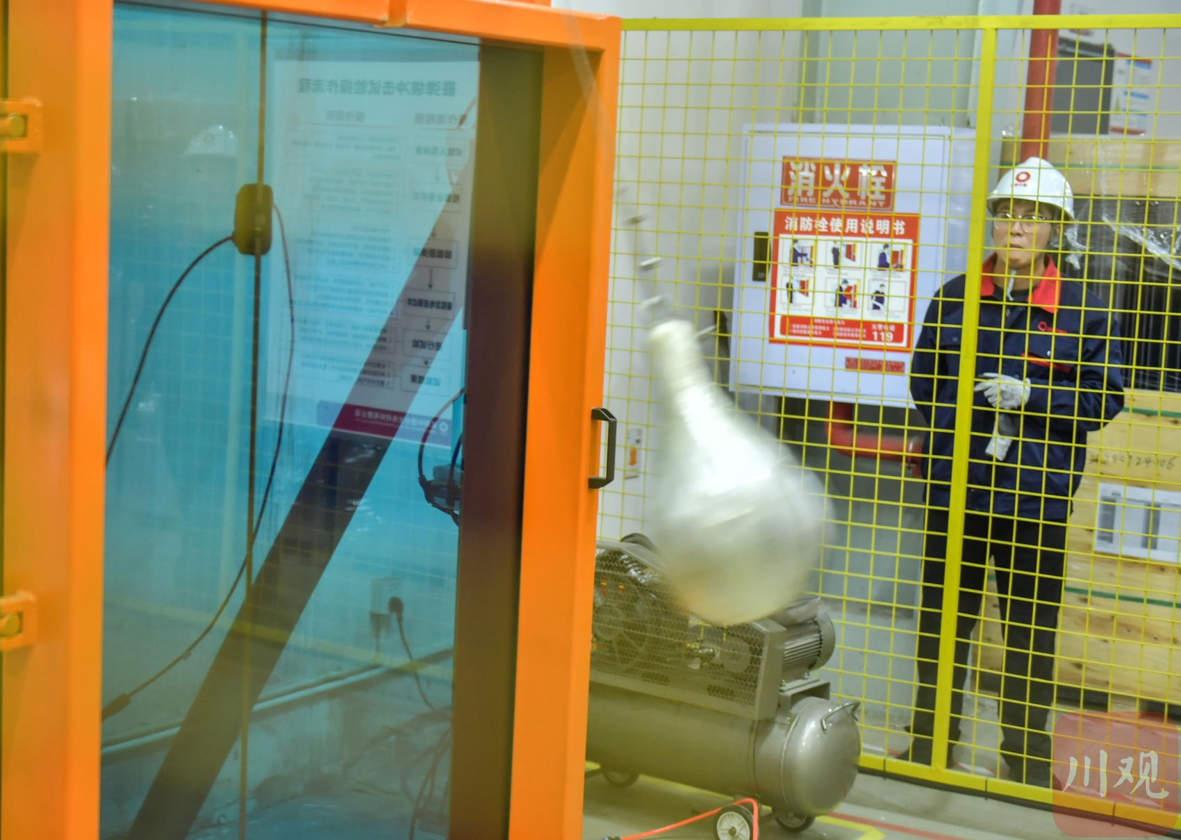 2025年12月11日,位于成都市双流经济开发区的成都中建材光电材料有限公司生产车间,工作人员对碲化镉发电玻璃进行撞击测试。