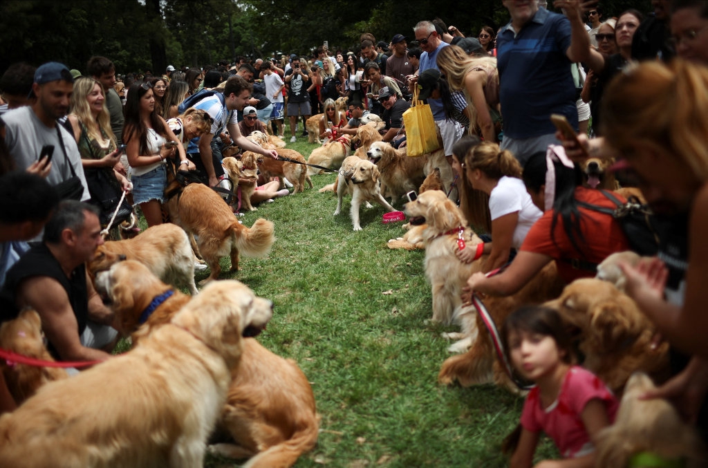 当日,众多金毛犬的主人携带宠物在阿根廷首都布宜诺斯艾利斯参加一场专门为金毛犬举办的聚会活动。