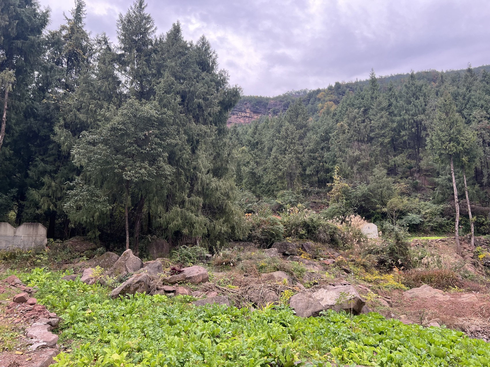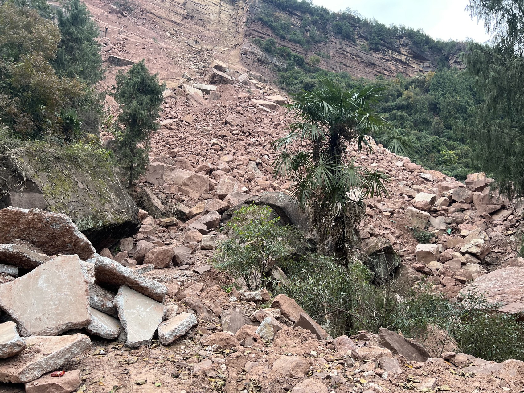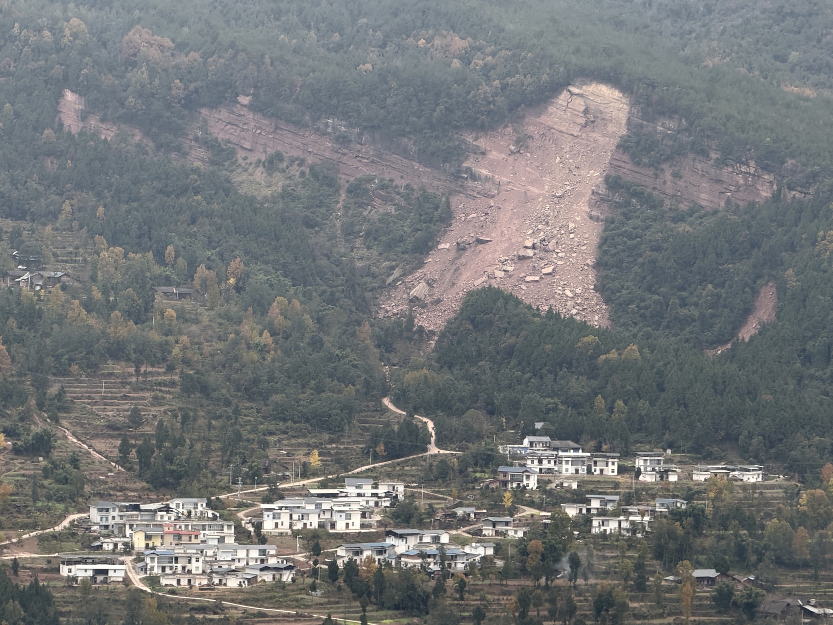 远眺垮塌山体。