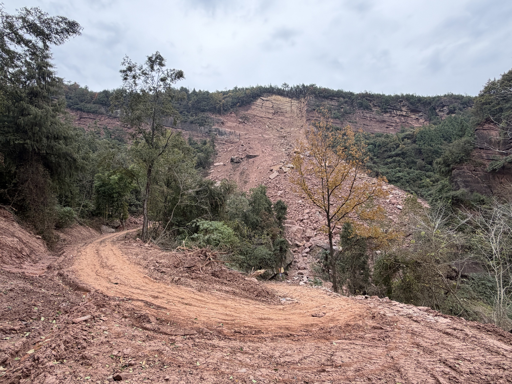 “路断了有两个多月了,前段时间暴雨导致山体滑坡,落下来的石头、泥土把路埋了,挖掘机也不敢开进去,怕再次引起滑坡。”王万舜告诉记者,路断后,3—6组的村民出行受到影响,村委会在原来断路旁挖了一条便民临时通道,方便村民通行。