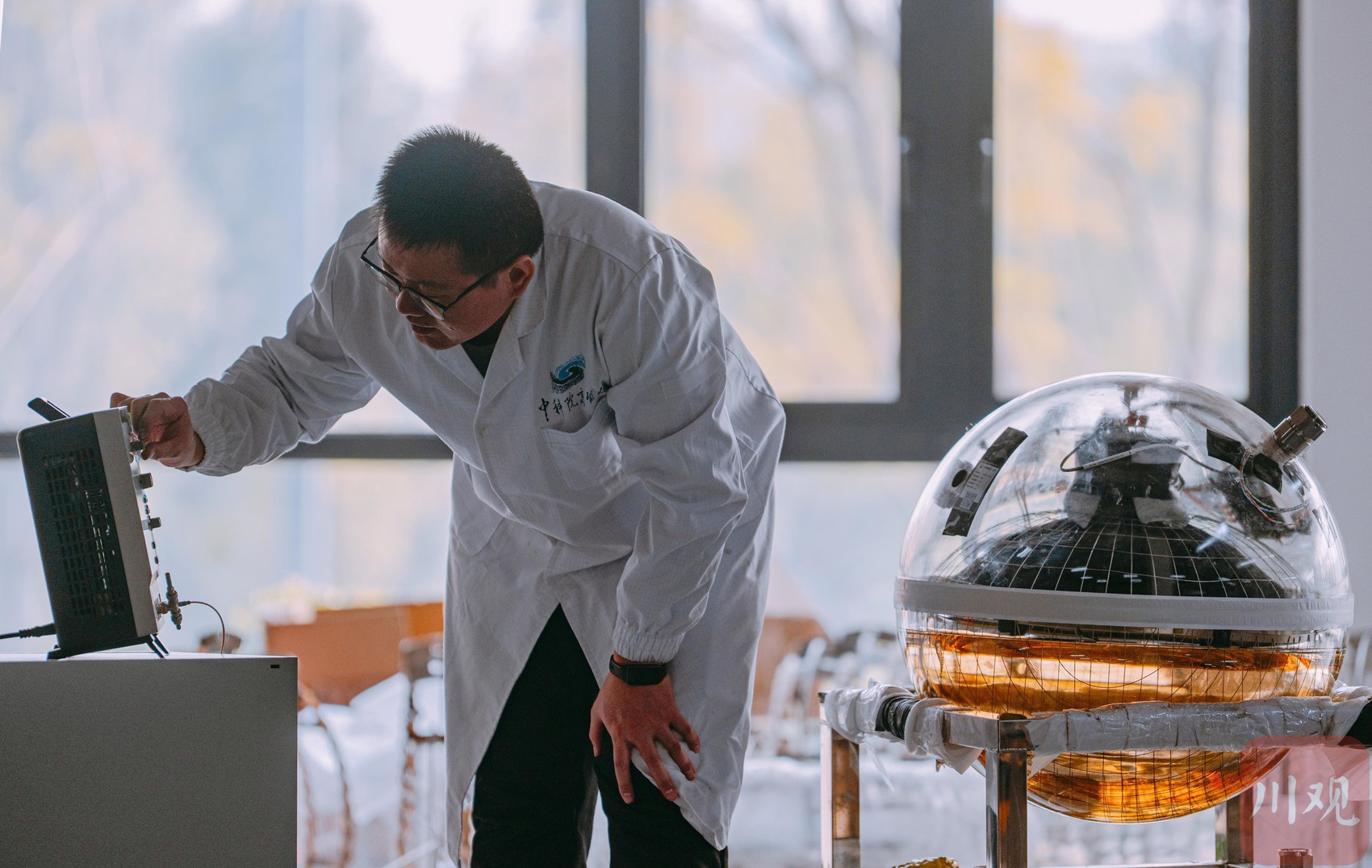 2024年12月22日,科研人员队对装有光敏探头的玻璃球仓进行封装。