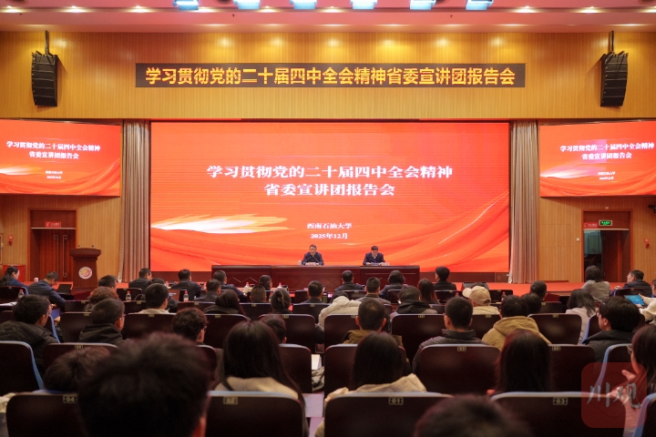 西南石油大学党委书记张烈辉表示,本场宣讲兼具理论深度、实践案例与发展大势研判,对学校深刻领会、准确把握和深入贯彻落实全会精神具有重要指导推动作用。下一步,学校将以党的二十届四中全会精神和省委十二届八次全会精神为指引,凝心聚力、真抓实干,确保学校发展与教育强省、教育强国建设同频共振,为服务国家战略和区域经济社会发展作贡献。