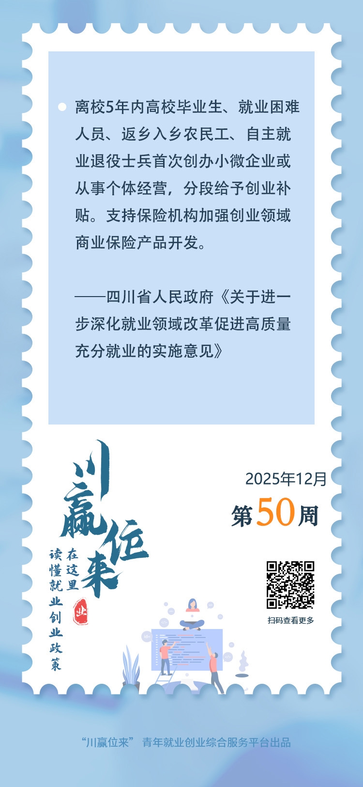 为更好发挥创业带动就业倍增效应,四川省人民政府近日印发的《关于进一步深化就业领域改革促进高质量充分就业的实施意见》提出,离校5年内高校毕业生、就业困难人员、返乡入乡农民工、自主就业退役士兵首次创办小微企业或从事个体经营,分段给予创业补贴。