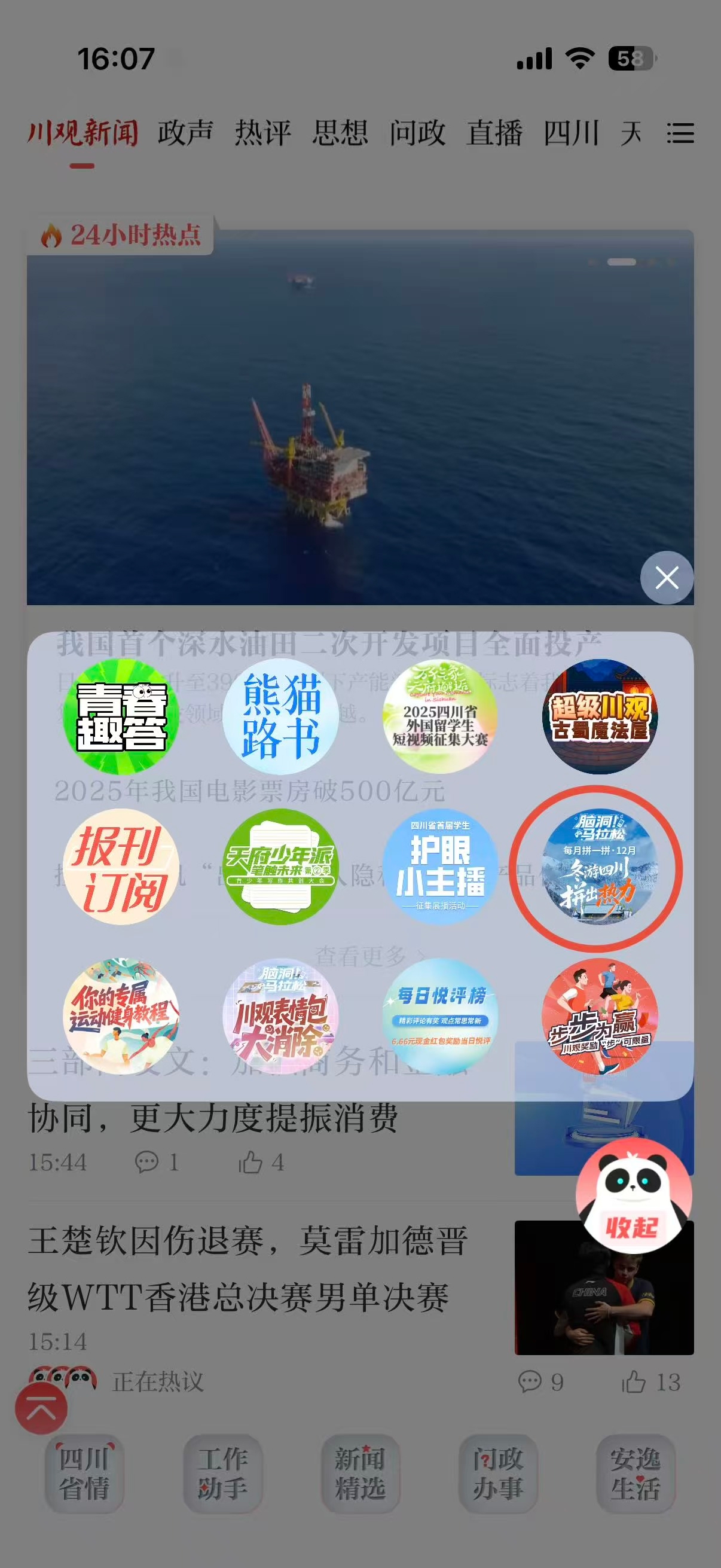 第二步:打开川观新闻客户端,您可以通过以下方式参与“冬游四川 拼出热力”活动: