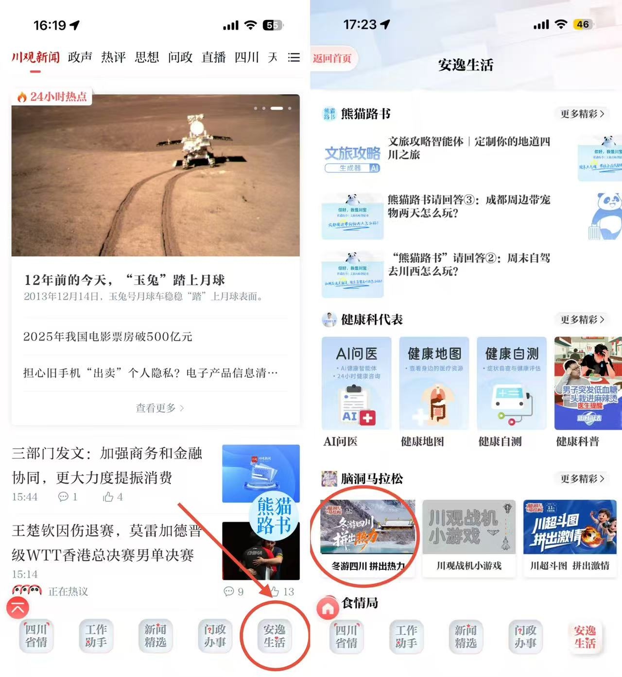 方式二:在川观新闻首页,点击右下角安逸生活,在脑洞马拉松找到“冬游四川 拼出热力”,点击即可参与;