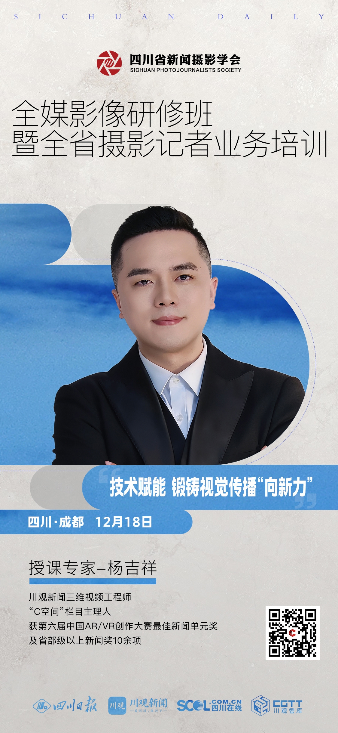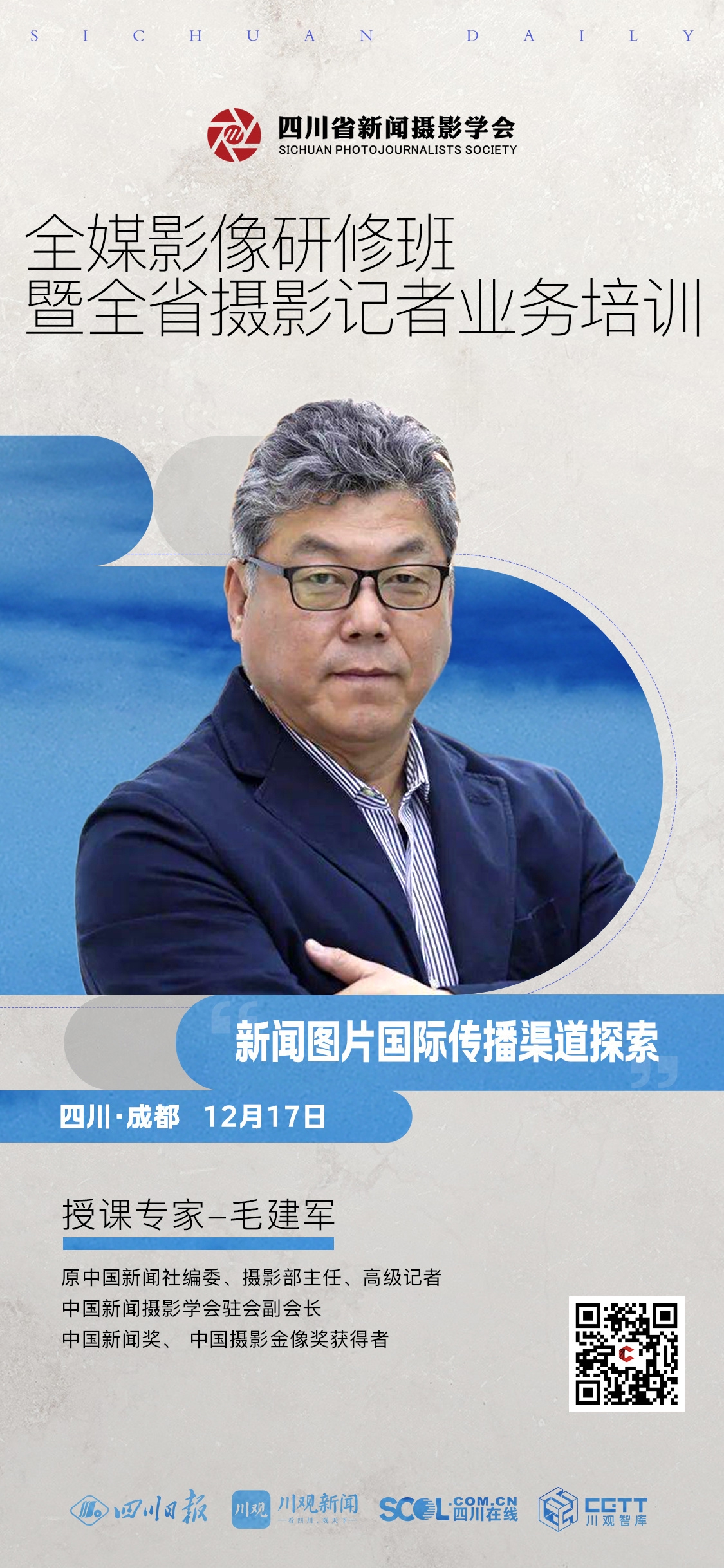 为全面提升全省摄影记者在全媒体时代的综合业务能力,四川省新闻摄影学会将于2025年12月17日至19日在成都举办“全媒影像研修班”暨全省摄影记者业务培训。