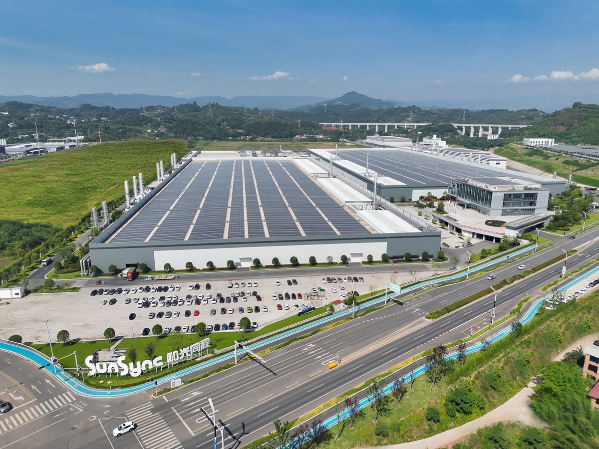 俯瞰宜宾高新区晶硅光伏电池生产基地,工厂屋顶安装的是分布式光伏系统。 罗顺 摄