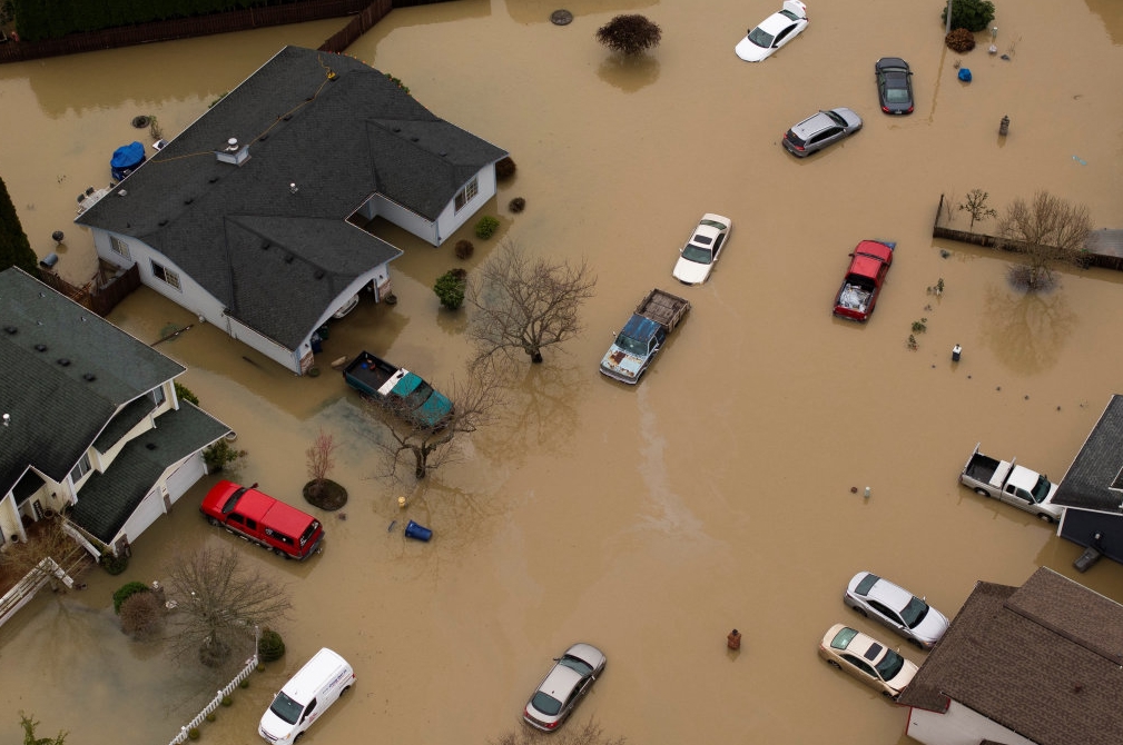 12月16日,在美国华盛顿州太平洋城,房屋和车辆浸泡在洪水中(无人机照片)。