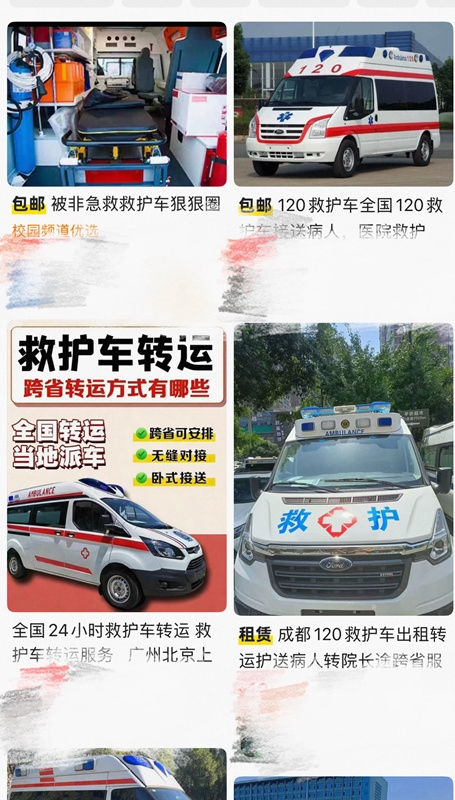 互联网平台上,非急救医疗转运车辆真假难辨。 网络截图