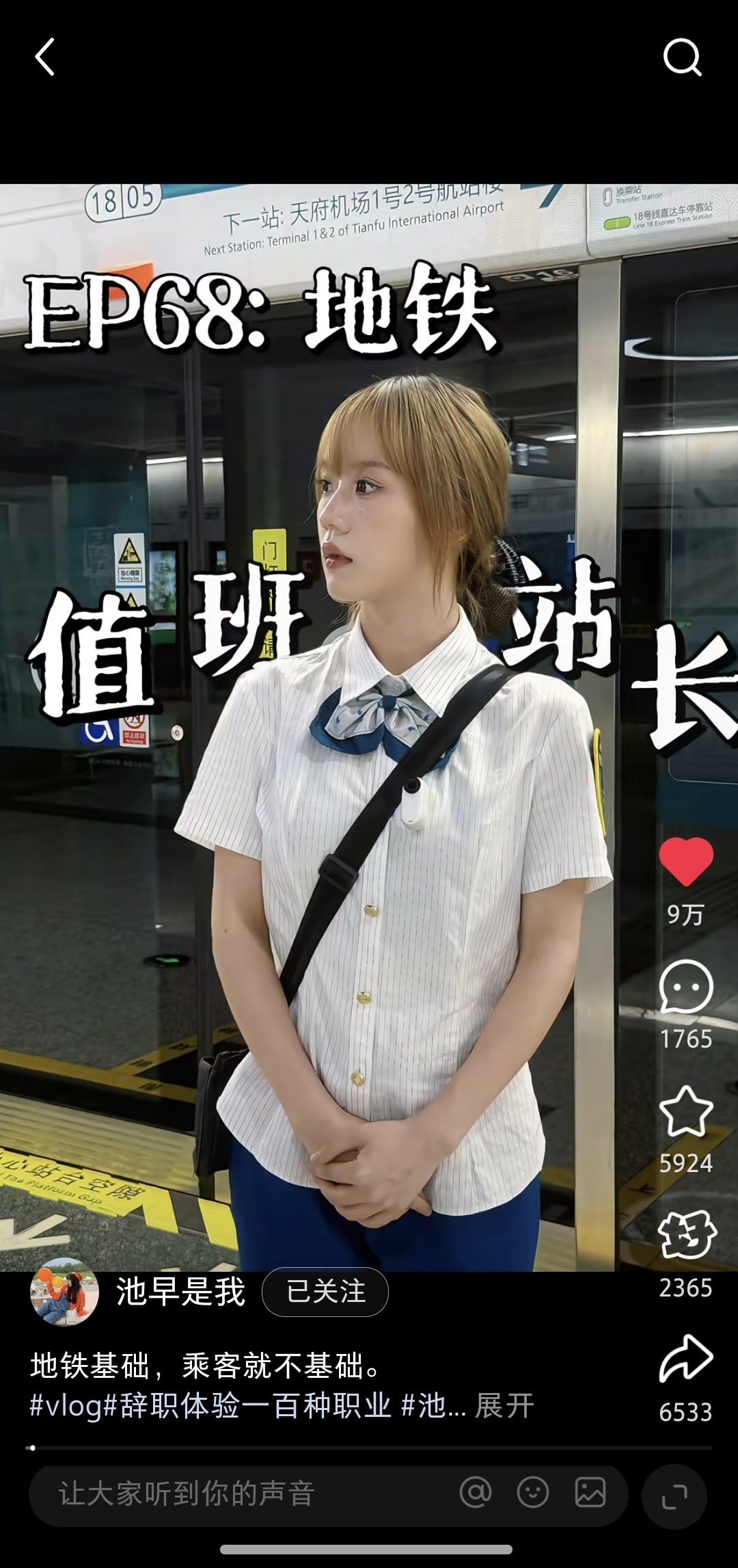 体验成都地铁值班站长,是池早爆款作品之一