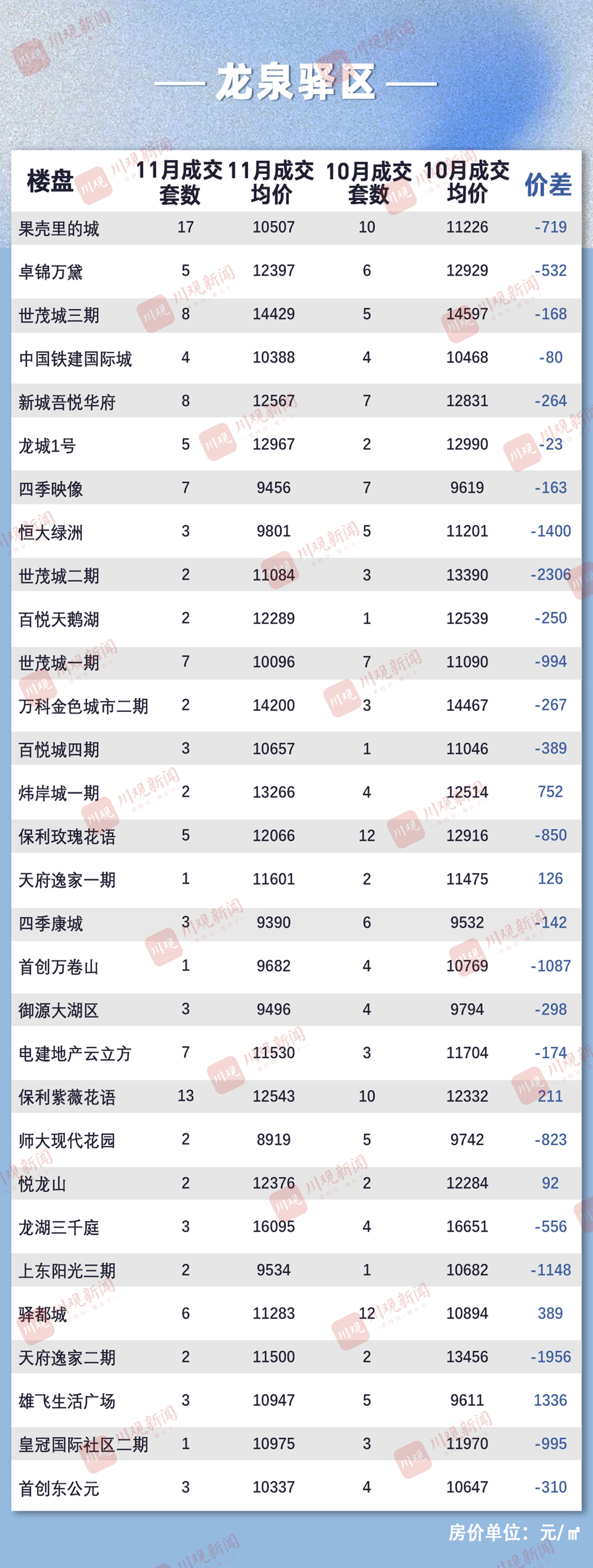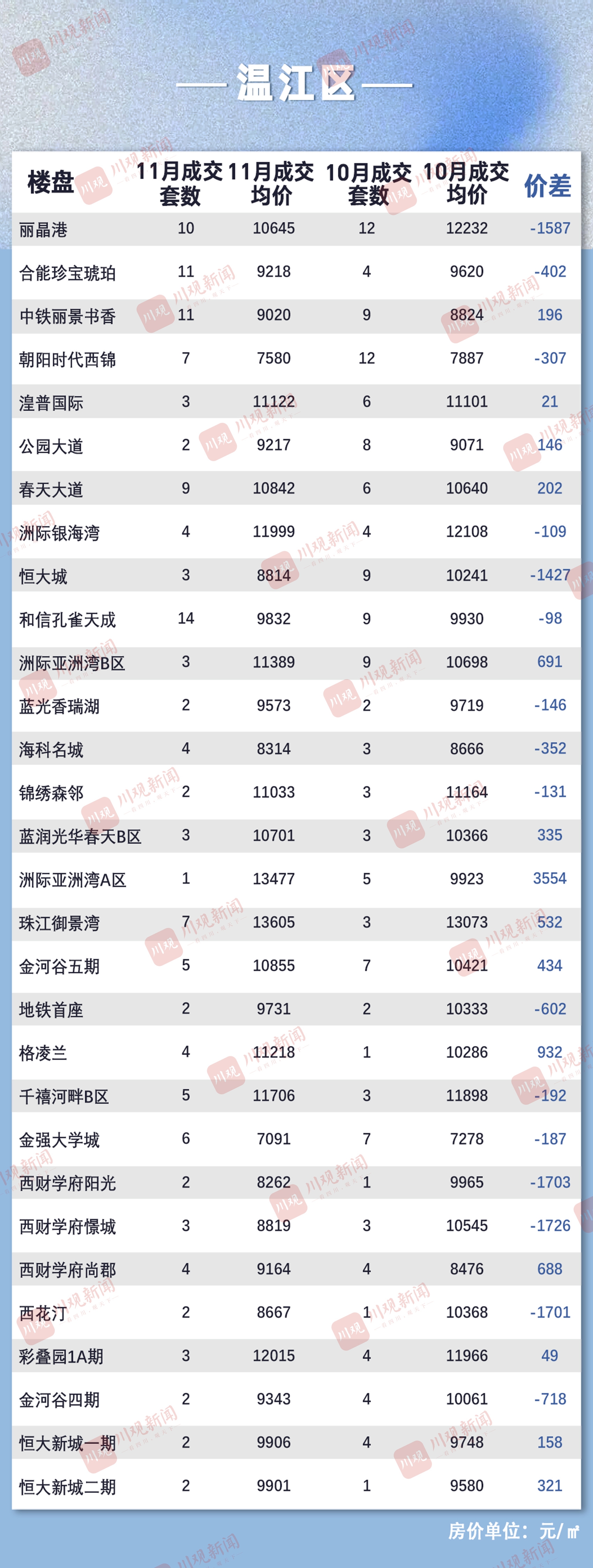 特别提示:本月收录数据,仅为成交房屋的“一房一价”,而并非“均价”或代表整体形势,仅供参考。本表格采样自贝壳、安居客、房天下等公开平台,绝大多数情况下反映的是二手房的成交情况,其内容仅供参考。最终解释权归川观新闻所有。