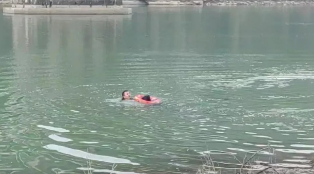 勇敢跳入刺骨江水救人的