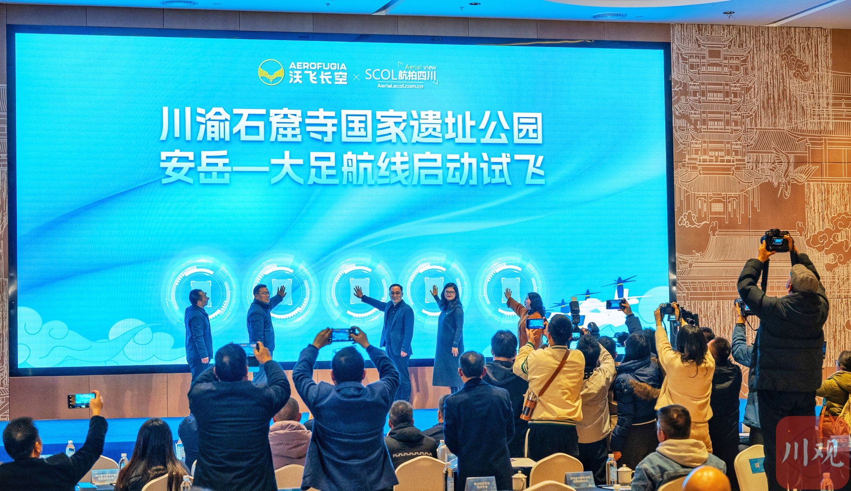 12月19日,由四川和重庆两地军民融合办、发改、文旅、团委以及中国民用航空西南地区管理局等单位指导,川观新闻、沃飞长空联合主办的川渝石窟寺国家遗址公园试飞暨低空区域协同发展活动在资阳安岳举行。