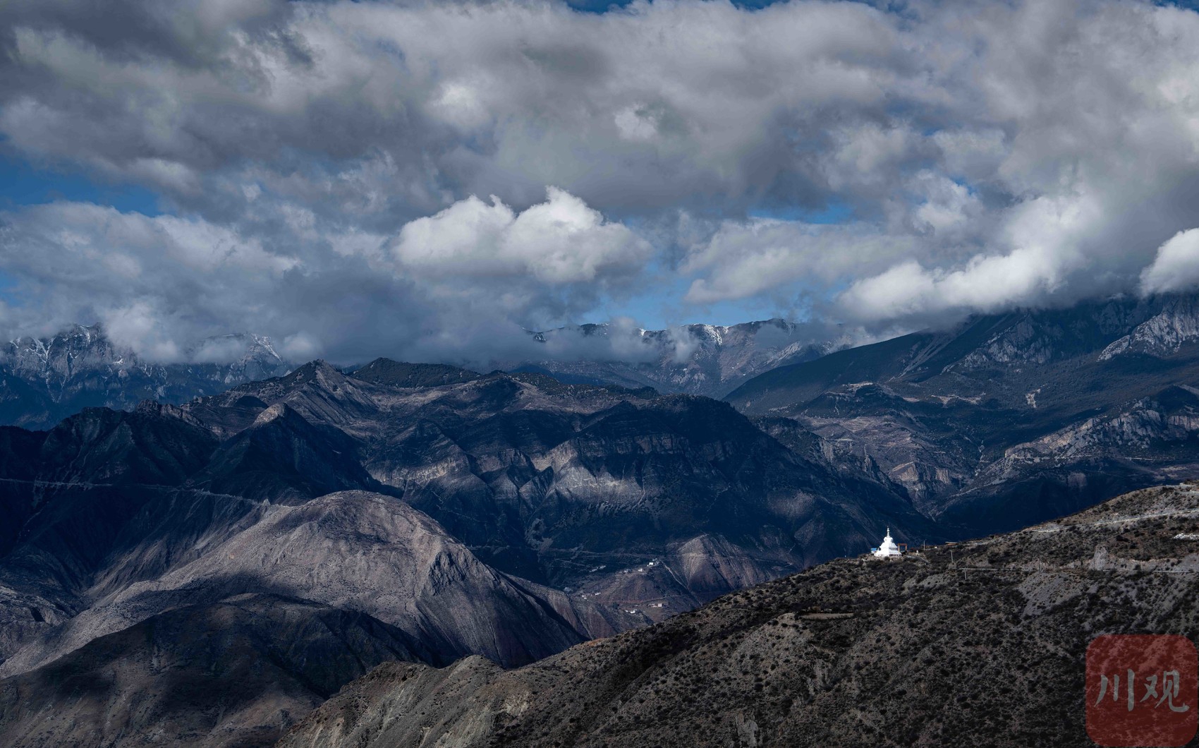 川滇藏三省交界处的甘孜州巴塘县地巫镇,重重叠叠的山峰连绵矗立。