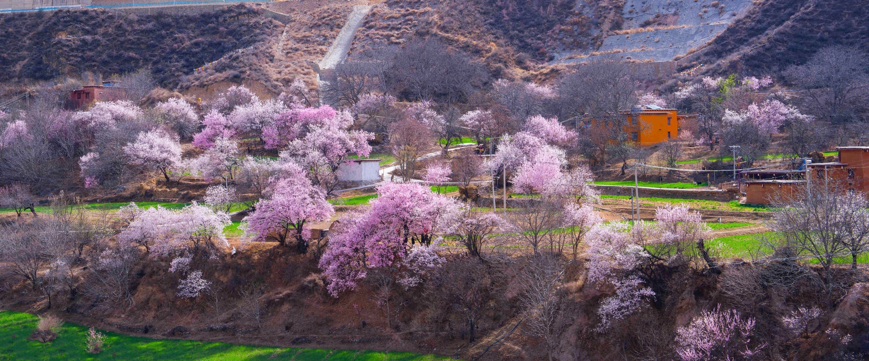 初春的甘孜州巴塘县夏邛镇三家村山谷间,桃花烂漫盛开。