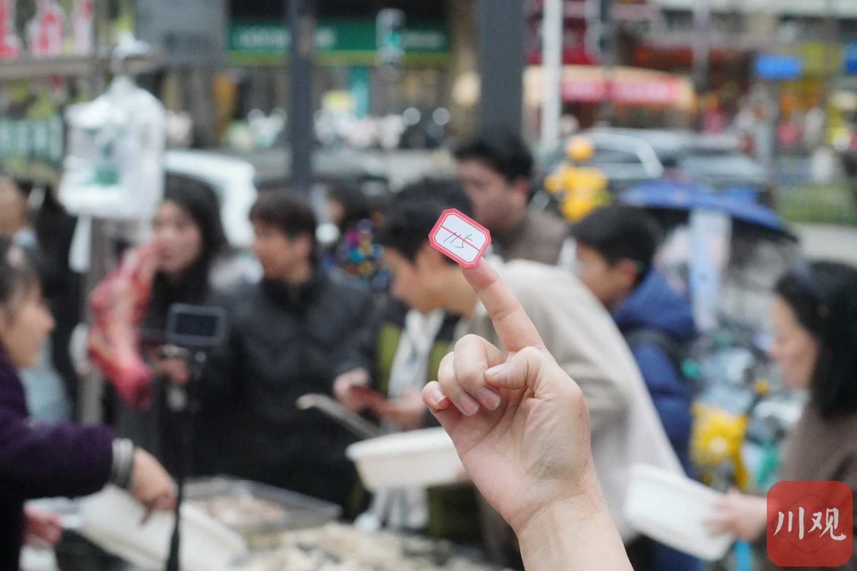 一位顾客举着排号单等待叫号