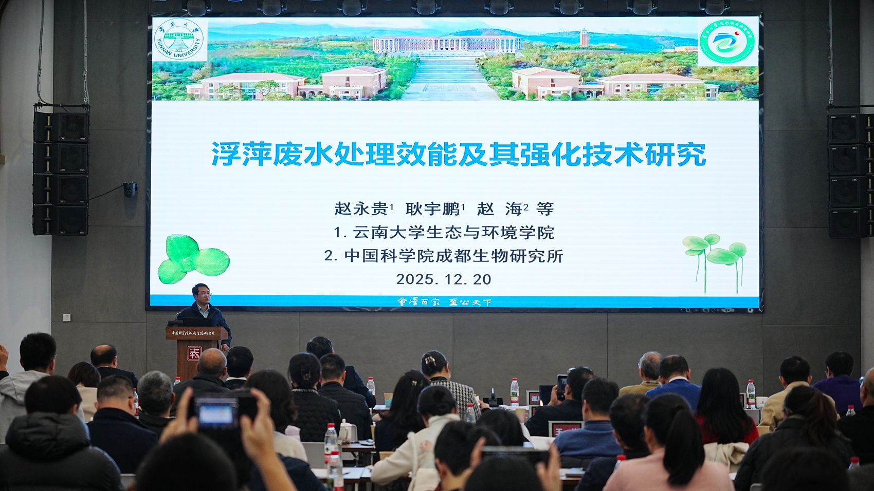 云南大学副教授赵永贵分享浮萍在污水处理中的应用。图片由成都生物所提供
