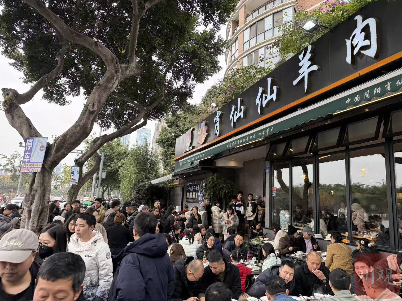 在成都小关庙街祖传老李羊肉汤店,一大早,后厨的大铁锅便“支棱”起来,鲜羊骨下锅慢熬,熬得汤汁浓白似奶。还没到饭点,店门口已经排起了长队。“今年羊肉确实贵了点,但是羊肉汤价格不变,还是138元/斤,打包带走是120元/斤。”老板李芳奎说。