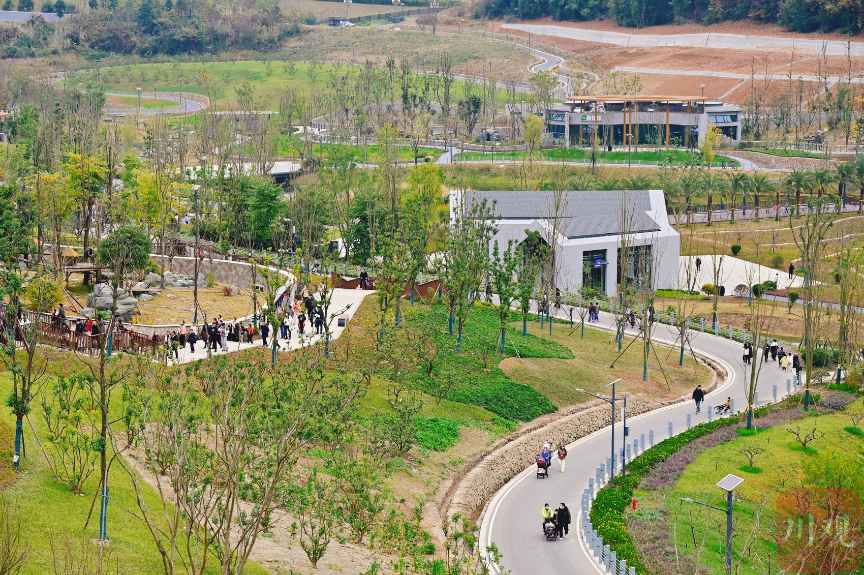 作为国家林草局与绵阳市政府共建的标杆项目,绵阳中华大熊猫苑坐落于科技城新区鼓楼山生态公园,占地120公顷,总投资15亿元,2024年3月开工建设,2025年10月29日完成工程移交。园区划分五大功能区,配套54套圈舍,涵盖大熊猫繁育、救护等全生命周期服务,同时打造伴生动物圈舍丰富物种多样性。