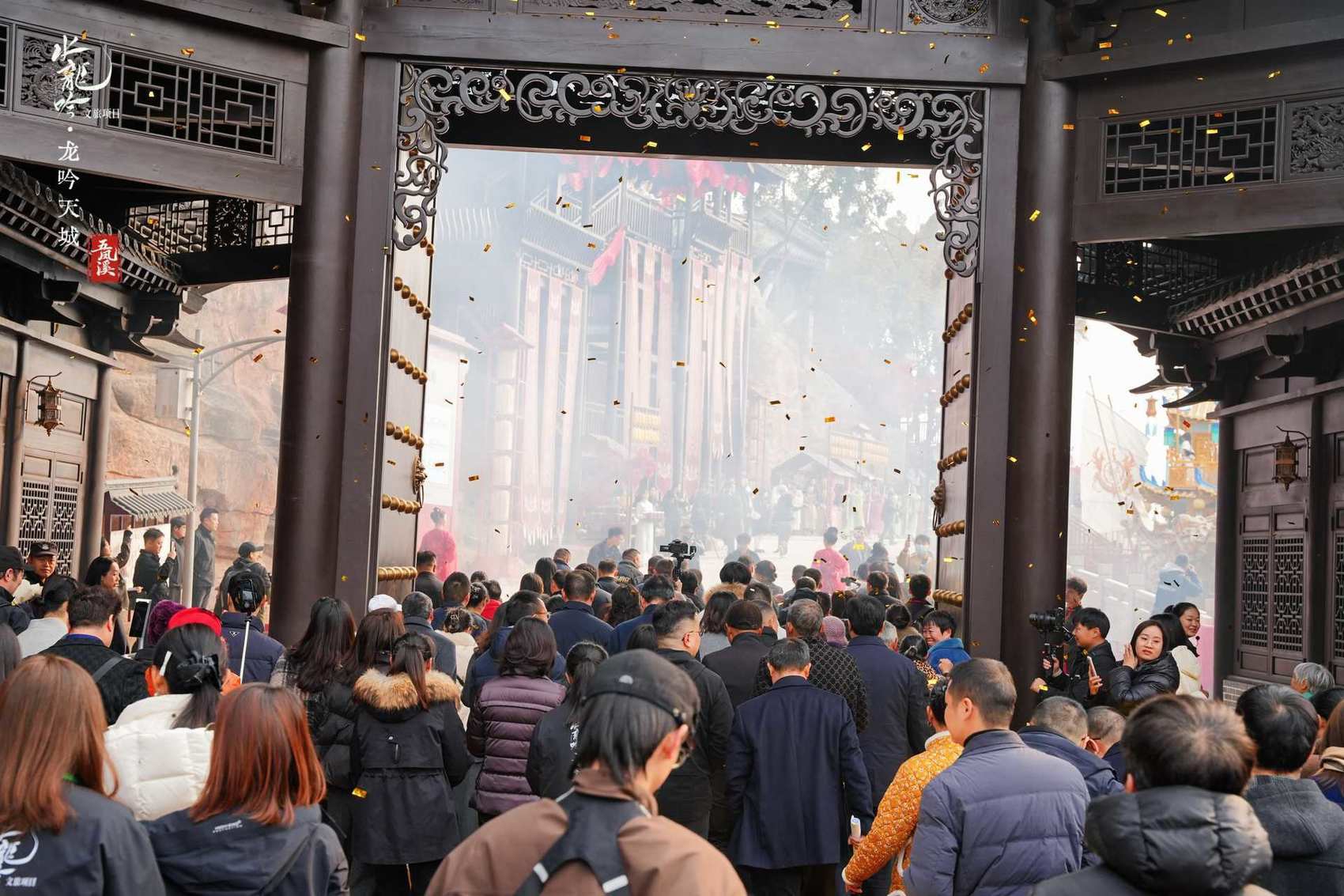 本月17日,在社会各界的见证下,五凤溪·龙吟天城正式开园,这是四川亮相的首个影旅融合景区。这个景区在2019年建好后空置了3年,2022年后近三年里洽谈了263个项目后,最终锁定了“影视IP+景区”的文旅运营新模式,让所有来宾眼前一亮。