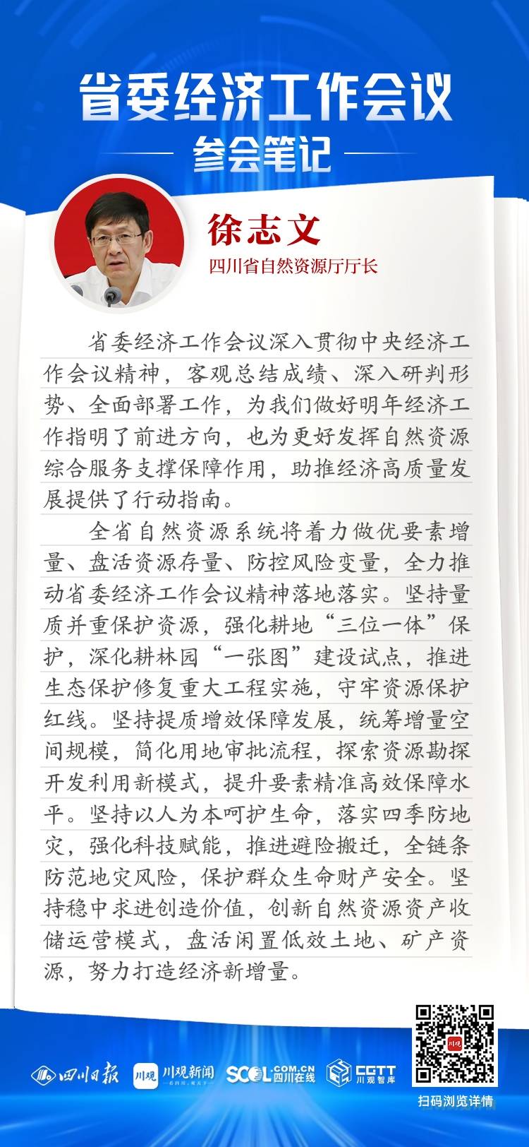 全省自然资源系统将着力做优要素增量、盘活资源存量、防控风险变量,全力推动省委经济工作会议精神落地落实。坚持量质并重保护资源,强化耕地“三位一体”保护,深化耕林园“一张图”建设试点,推进生态保护修复重大工程实施,守牢资源保护红线。坚持提质增效保障发展,统筹增量空间规模,简化用地审批流程,探索资源勘探开发利用新模式,提升要素精准高效保障水平。坚持以人为本呵护生命,落实四季防地灾,强化科技赋能,推进避险搬迁,全链条防范地灾风险,保护群众生命财产安全。坚持稳中求进创造价值,创新自然资源资产收储运营模式,盘活闲置低效土地、矿产资源,努力打造经济新增量。