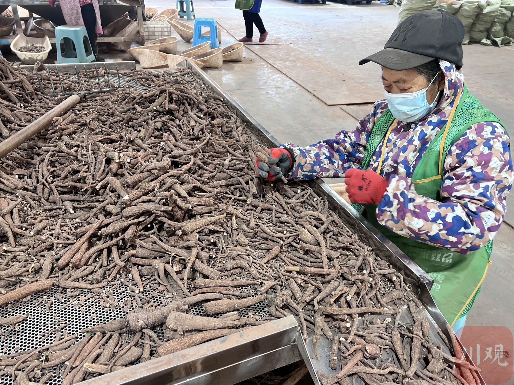 11月底,四川全泰堂川白芷蓬丰农业有限公司生产车间,工人正在筛选白芷。阚莹莹 摄