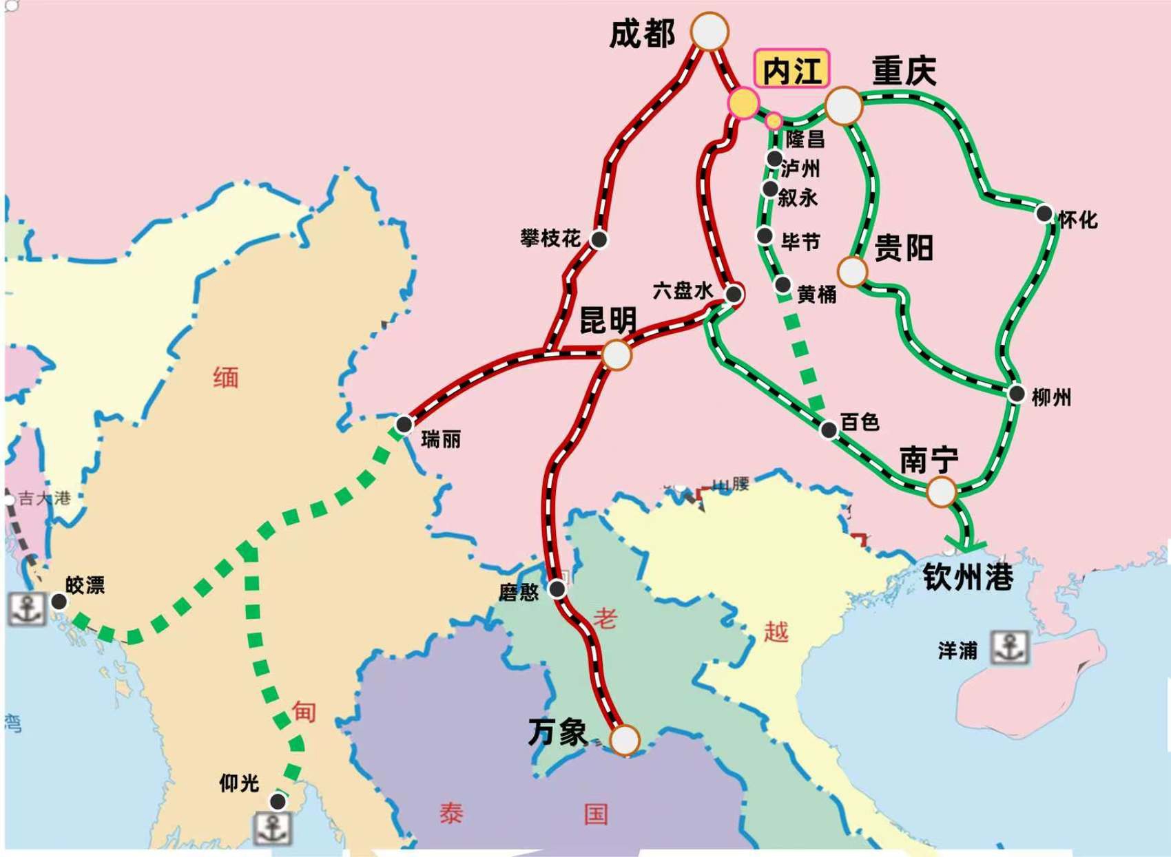 据了解,目前,内江已揭牌运行成渝主轴国际班列班车集结中心,开通中老、中缅等15条国际班列线路,下一步将依托西线,探索开行中越国际班列及面向东盟的农资专线,推动成渝建材、机械汽配、生物医药出川出海,同时把东盟特色农产品、稀有矿产等引入四川辐射西部,打造成渝输出、东盟输入的集散分拨中心。