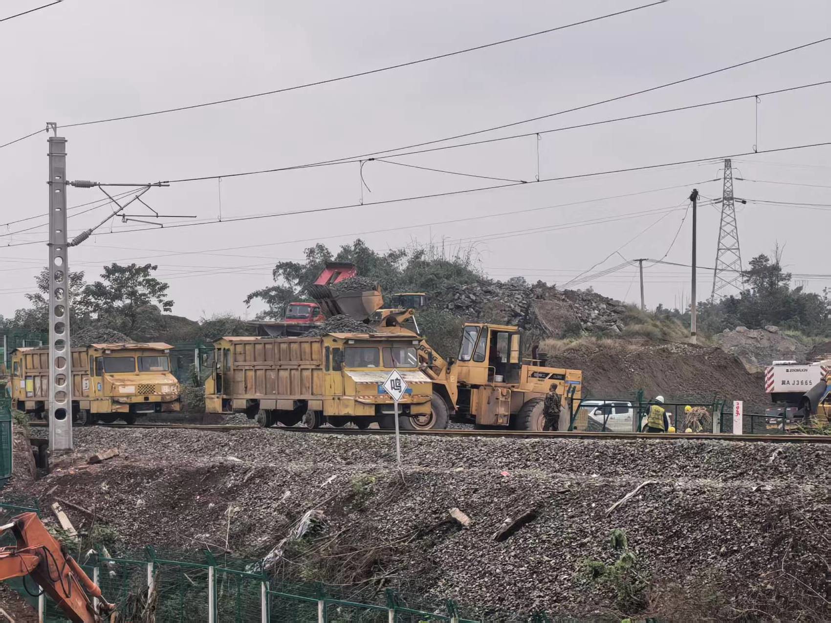为建设中的铁路填补道砟。隆昌市发改局供图