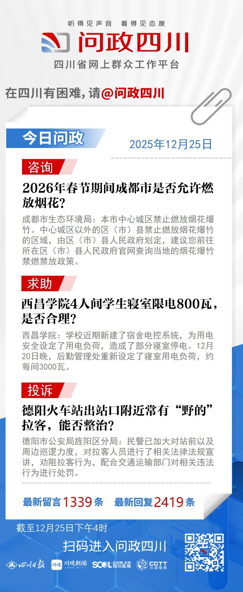 问政四川网友提问:在2026年春节,成都市能否允许燃放烟花爆竹?让大家热热闹闹过节,增添喜庆氛围。希望有关部门允许规定时间在固定的位置燃放。