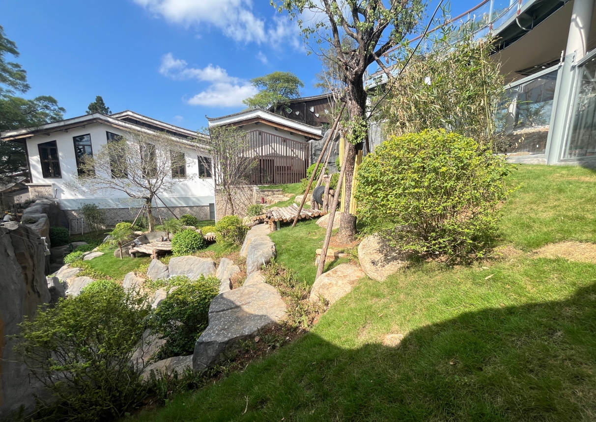 从居住环境来看,这里完全贴合大熊猫的生存习性。室内活动场配有栖架、吊床、秋千、垫料池等丰容装置,墙面有仿大熊猫自然生境彩绘。室内兽舍及室内运动场通过中央空调和新风系统实现全年温控,并配有温湿度报警系统。室外活动场地则配有流苏、紫薇、香樟、朴树、蓝花楹、枫树等乔木,搭配杜鹃、扶桑、石榴等灌木及草坪。