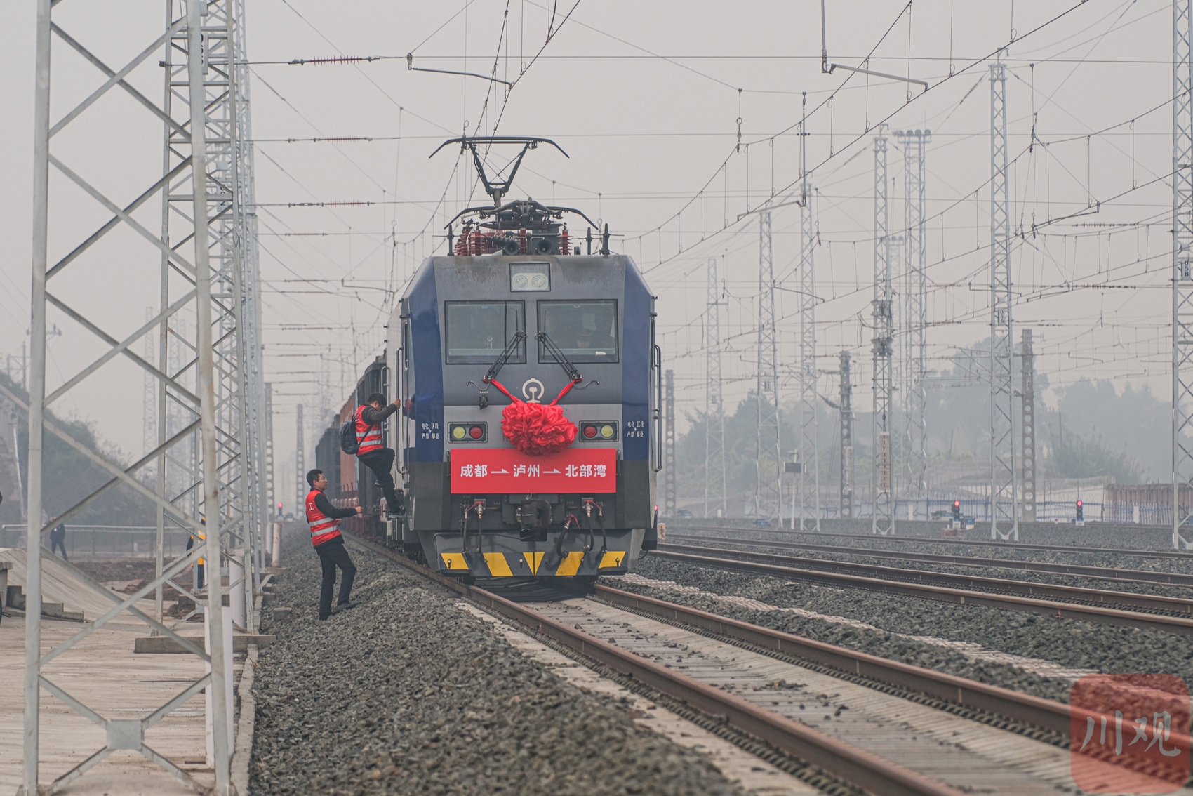发车前3个小时,首发司机黄智、刘华就到岗了,两人搭班,先对当天的路线流程进行核对,再详细检查机车的各个环节,确保万无一失。这是司机黄智独立驾驶机车的第六年,作为一名铁路老司机,货车、客车都能轻松驾驭,在隆泸叙铁路联调联试期间,他已经作为试验车司机跑过多次。“能开首发车,还是很激动,希望把这些货物安全平稳送到目的地。”