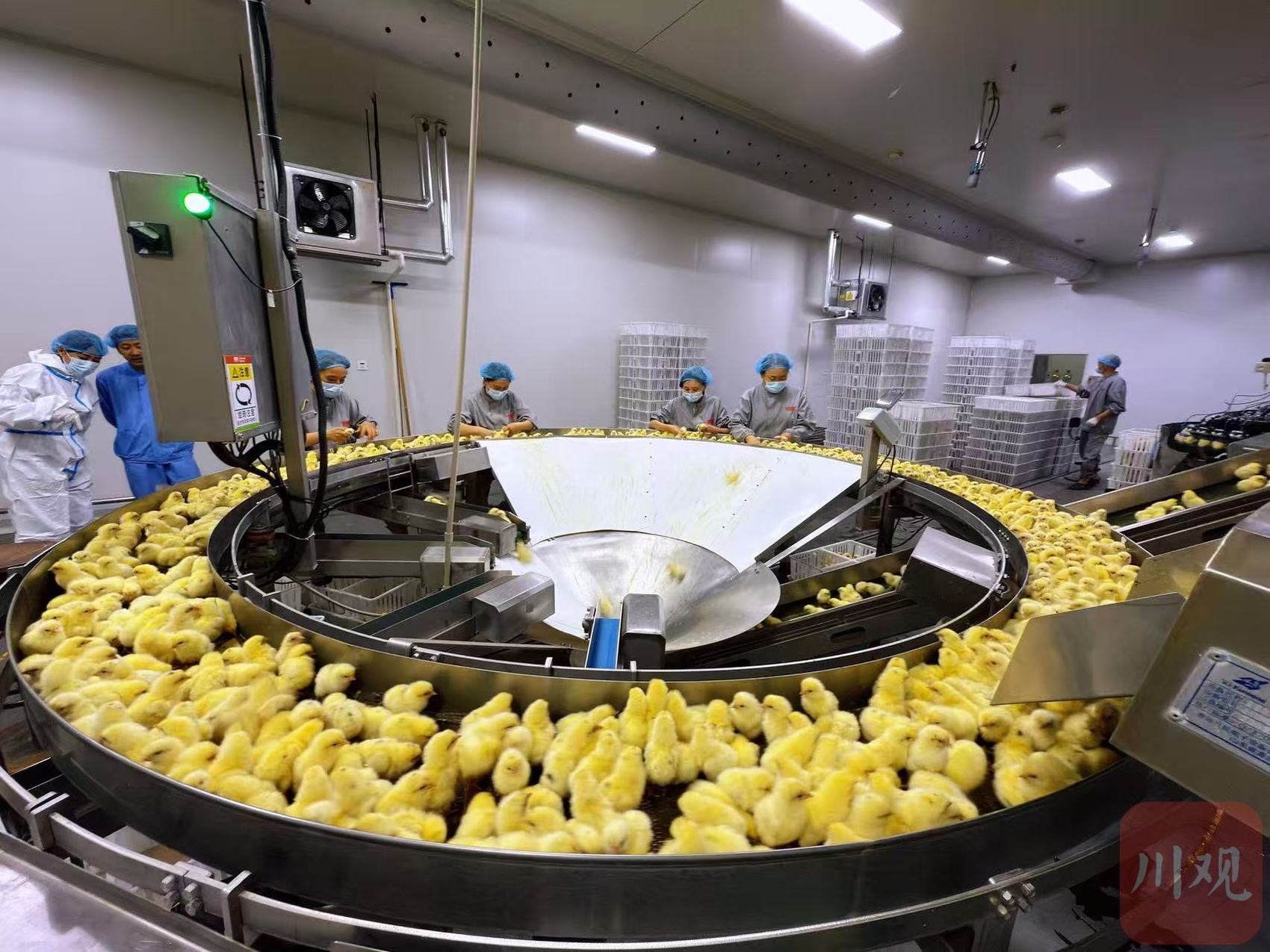 在盐亭县黄甸镇蛋鸡种业现代农业园区,凤妮可孵化中心交付部经理刘萌敏刚送走一批湖南客商。“今年我们已经与该客户签下了40万羽鸡苗的订单。”她笑着说。