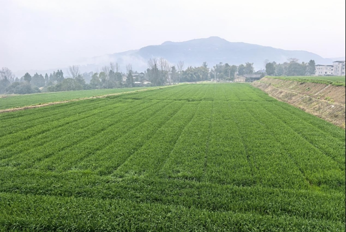 平坝村小麦长势喜人。通江县农业农村局农技站供图